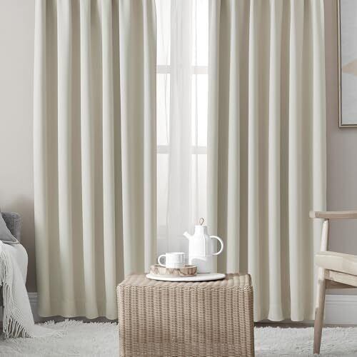 Hansleep カーテン 4枚セット 遮光カーテン 1級遮光 ベージュ 幅100cm丈178cm 断熱 防寒 防音 省エネ 無地 洗える 寝室 リビング用 (ドレープカーテン2枚・レースカーテン2枚)