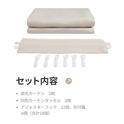 【商品仕様】遮光カーテン*2枚、カーテン用アジャスターフック*12個、カーテンタッセル*2