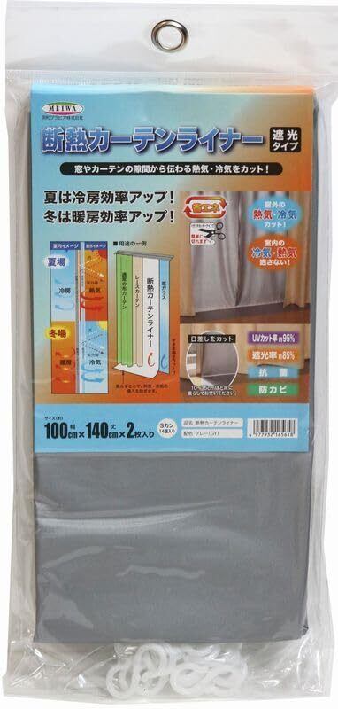明和グラビア 冷気を防ぐ 窓 冷暖房効率UP カーテン 省エネ 節電 遮光 UVカット 取り付け簡単 グレー 断熱カーテンライナー 100cm×140cm 2枚入