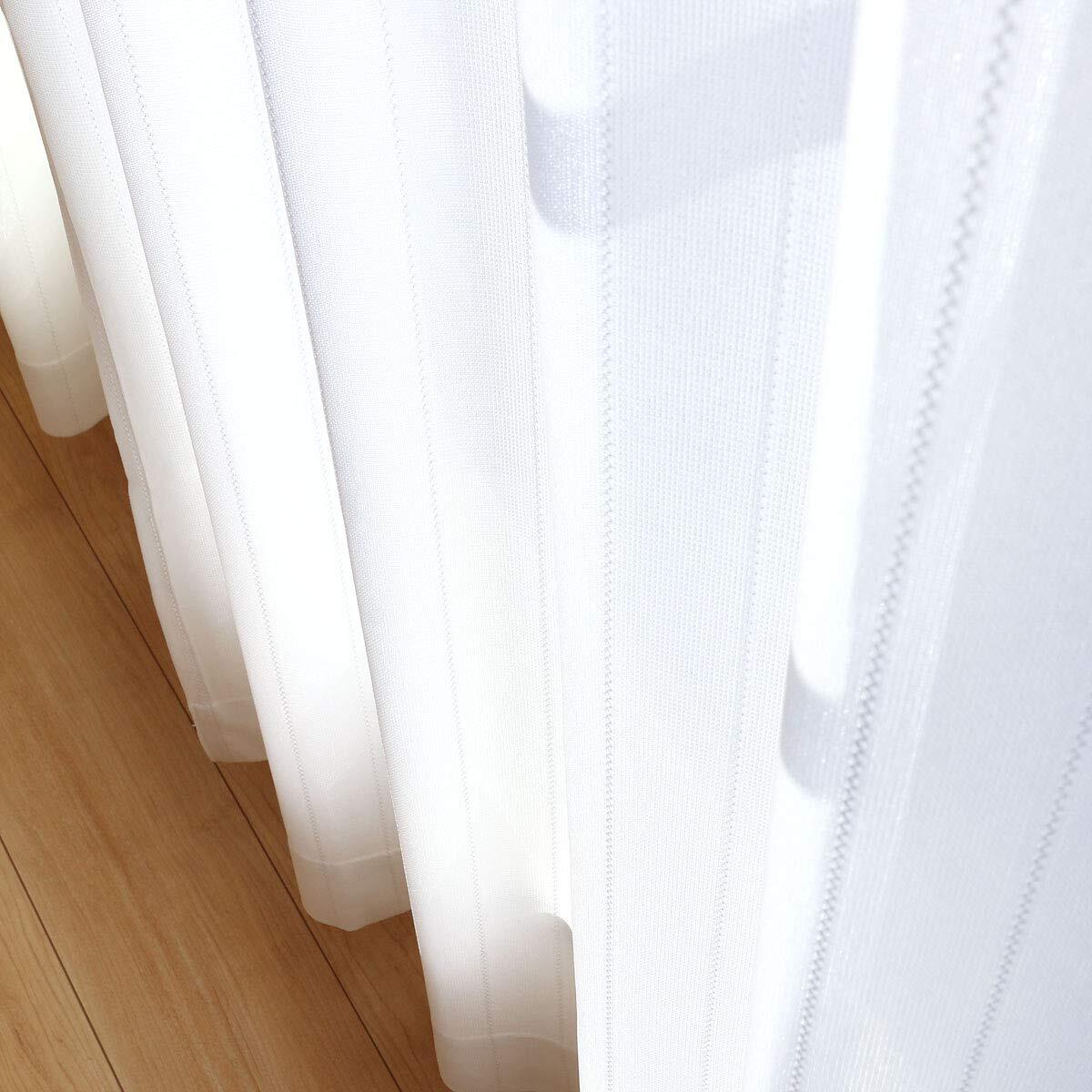 夜も透けにくいミラーレースカーテン UVカット ミラーカーテン 1組2枚入り 幅100cm×丈228cmの2枚組 KOM581-14/ストライプ