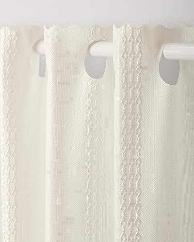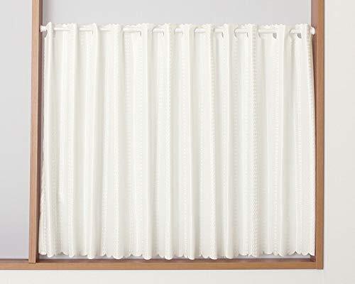 カフェカーテン ワイドサイズ UVカット率92.4% ミラーレース 夜でも見えにくい 断熱 防炎加工 4193鎖調ストライプホワイト 幅190x丈70cm1枚入