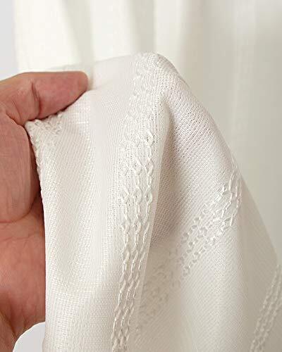 UVカット率92.4% 巾が大きいワイドサイズのミラーカフェカーテンです。大きく広げて掛けてもよし、ヒダたっぷりで掛けてもよし。3本鎖のように並んだストライプ(幅約1.5cm)のデザインです。表の地の生地は光沢はなく、ストライプ部分は光る糸を使っているので、 アクセントとしての存在感があります。色はホワイト表記ですが、ややオフホワイトに 近い白です。ふだん見慣れたレースカーテンと比べると、かなり地厚でゴッツイ生地になります。断熱性も高いので、気になる小窓に取り付けて冷暖房効果アップ。台所や玄関などの小窓におすすめ。※お部屋の中からも外が見えにくくなりますので、ご注意下さい。