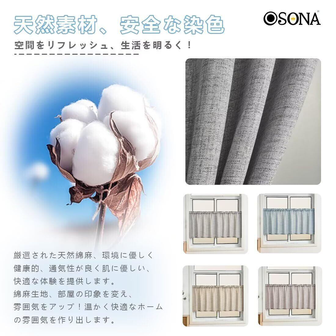 OSONA カフェカーテン 丈30cm 幅90cm 小窓 出窓 短いカーテン 目隠し 天然素材 無地 北欧 おしゃれ UVカット 透けにくい 外から見えにくい 間仕切り 断熱 保温 省エネ 遮像カーテン シンプル プライバシー 日焼け防止 風を通す 洗濯可能(グレー 1枚入り)