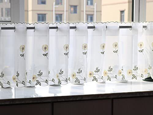 フローラルパターン:リネンのテクスチャード加工の白い薄手のカーテンに活気のある黄色い花の組み合わせることで、花の中で頭を悩ませ、部屋に新鮮さと活力のユニークな雰囲気を与えることができます。