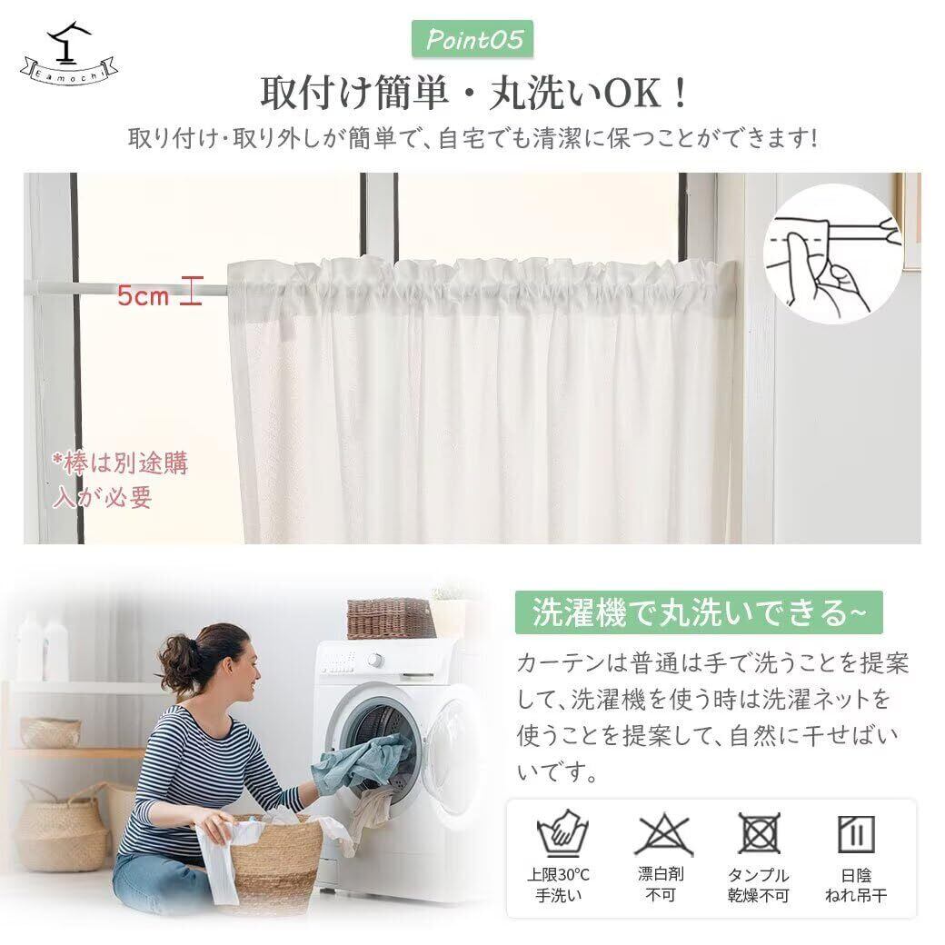✪【ミラー効果・UVカット】遮熱 断熱などの効果も期待できるカフェカーテン。紫外線を吸収したり、反射したりする特殊な繊維を利用しており、可視光線は通して明るさは確保しながら、UVカットできるカーテンは家具やカーペットの色あせも防ぐことができます。紫外線はお肌の大敵で、カーテンを付けたら、お部屋が暗くなることなく、日中にUVカットすることによってお肌を守ります。