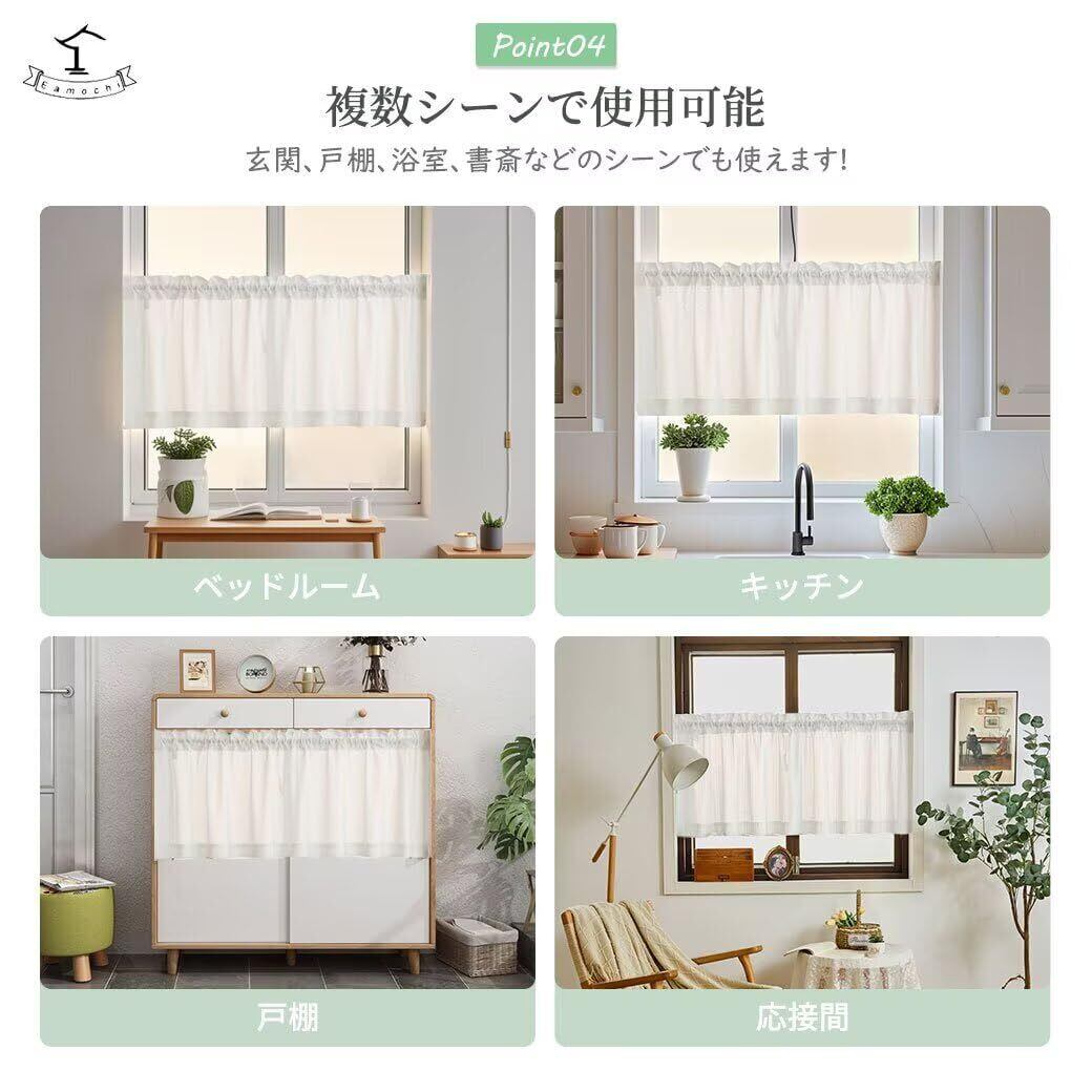 Eamochi カフェカーテン ミラー 丈30cm 幅135cm 小窓用 目隠し ミラーレース 無地 北欧 UVカット 断熱保温 省エネ 遮像 出窓用 半窓カーテン 日焼け防止 洗える ホワイト