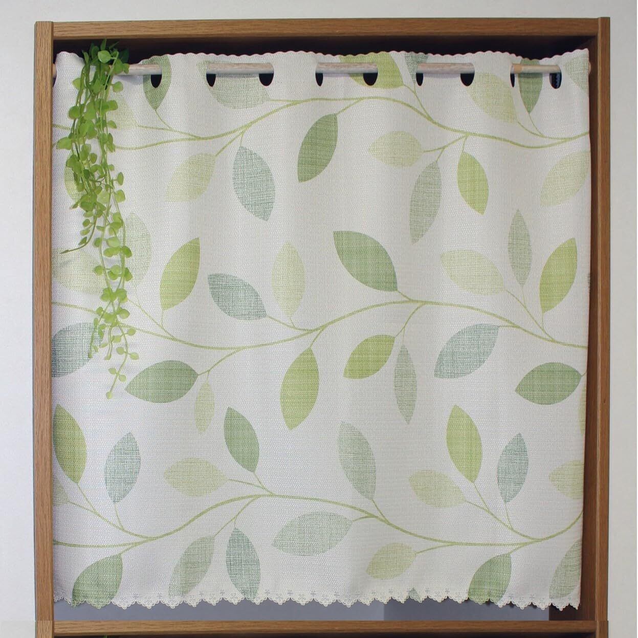 【製品・カラー・サイズ】 カフェカーテン・ グリーン [ボタニッシュ・遮光3級] ・ 幅95cm x 丈70cm [1枚入] 適応窓サイズ:幅 45 - 85cm