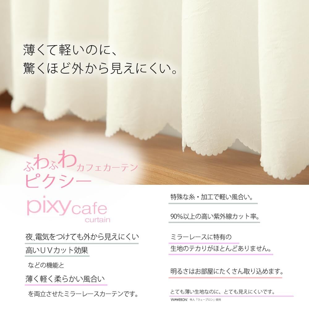 カーテン天国カフェカーテン UVカット率93.5% 夜でも見えにくい ふわふわ軽いレース ホワイト 幅142x丈50cm 1枚入