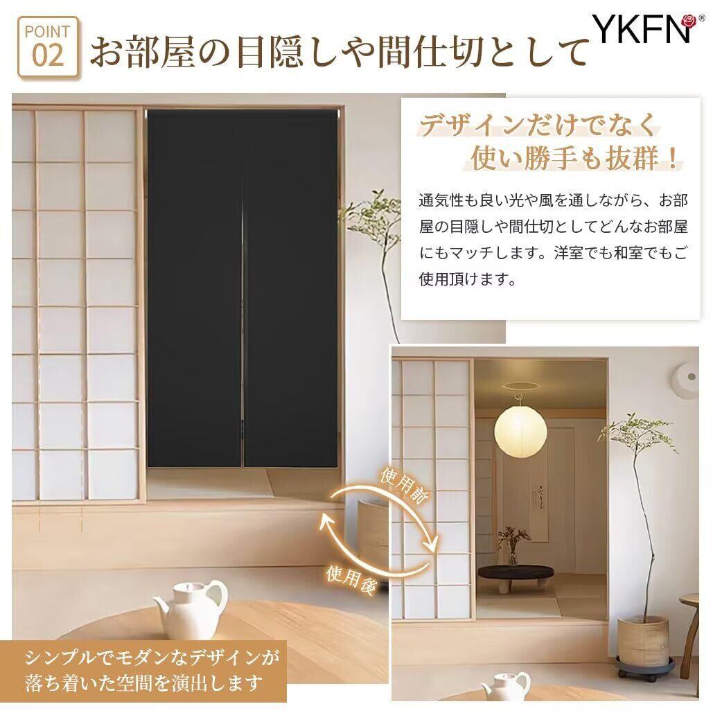 YKFN のれん 暖簾 おしゃれ 遮光 ロング 間仕切りカーテン 断熱保温 暖簾 170cm丈 幅85cm 目隠し 防寒 防音 厚手 間仕切り 和風 北欧 シンプル お洒落 無地 ドアカーテン 玄関 キッチン リビング 飲食店 出入り口 部屋仕切り 洗える 1枚 ブラック