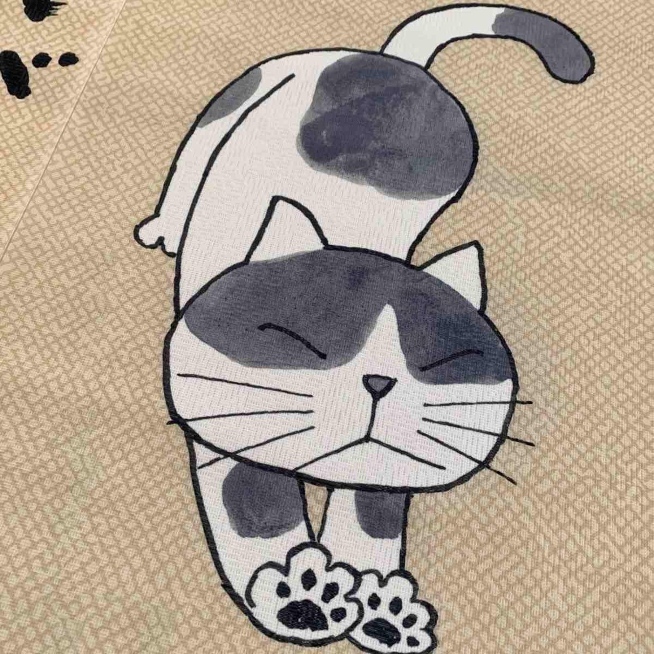 のれん 暖簾 おしゃれ 和風 可愛い猫柄 間仕切り カーテン 丈150センチ ロング 玄関 階段 廊下 リビング 脱衣所 お風呂 戸口 目隠し 遮光 プライバシー保護 ドア 仕切り (太い猫, 幅85cm x丈150cm)NR1060