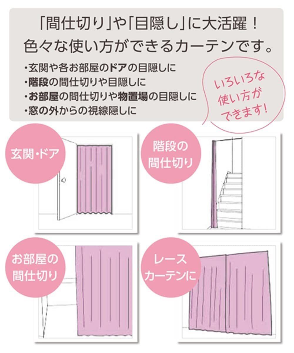 パタパタたためて便利な間仕切りカーテンフック付きなのでポールだけでなくカーテンレールにも取り付け可能。幅と丈が(約)10cmピッチでカット出来るので、のれんやカーテンとしてはもちろんちょっとした間仕切りや目隠しとして様々な場所で大活躍。すっきり折りたためるので邪魔にならず、開け閉めの多い場所にもオススメです!