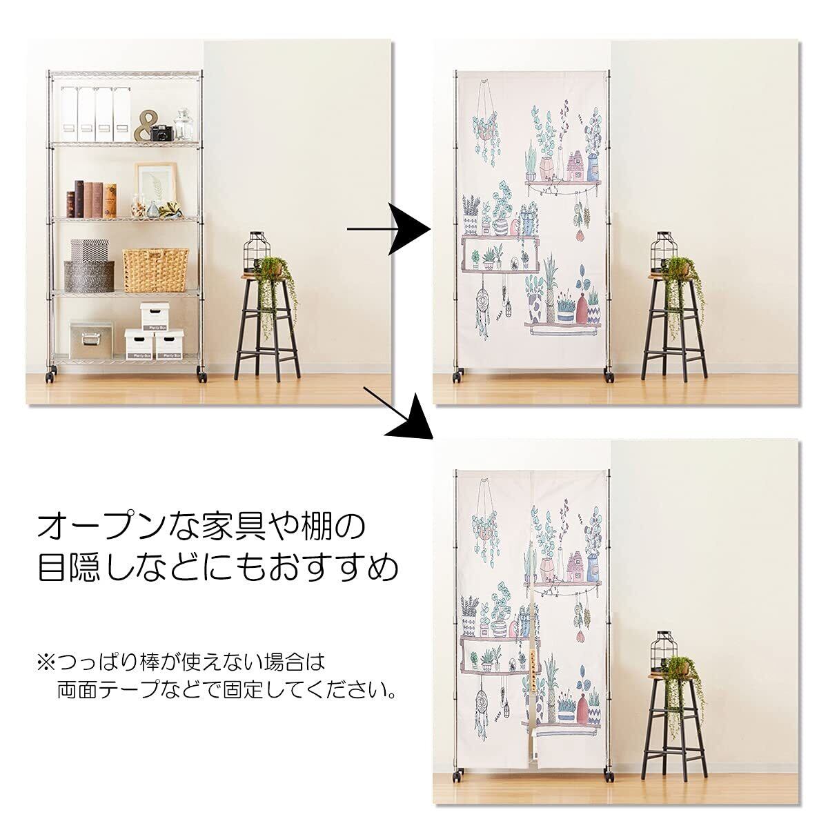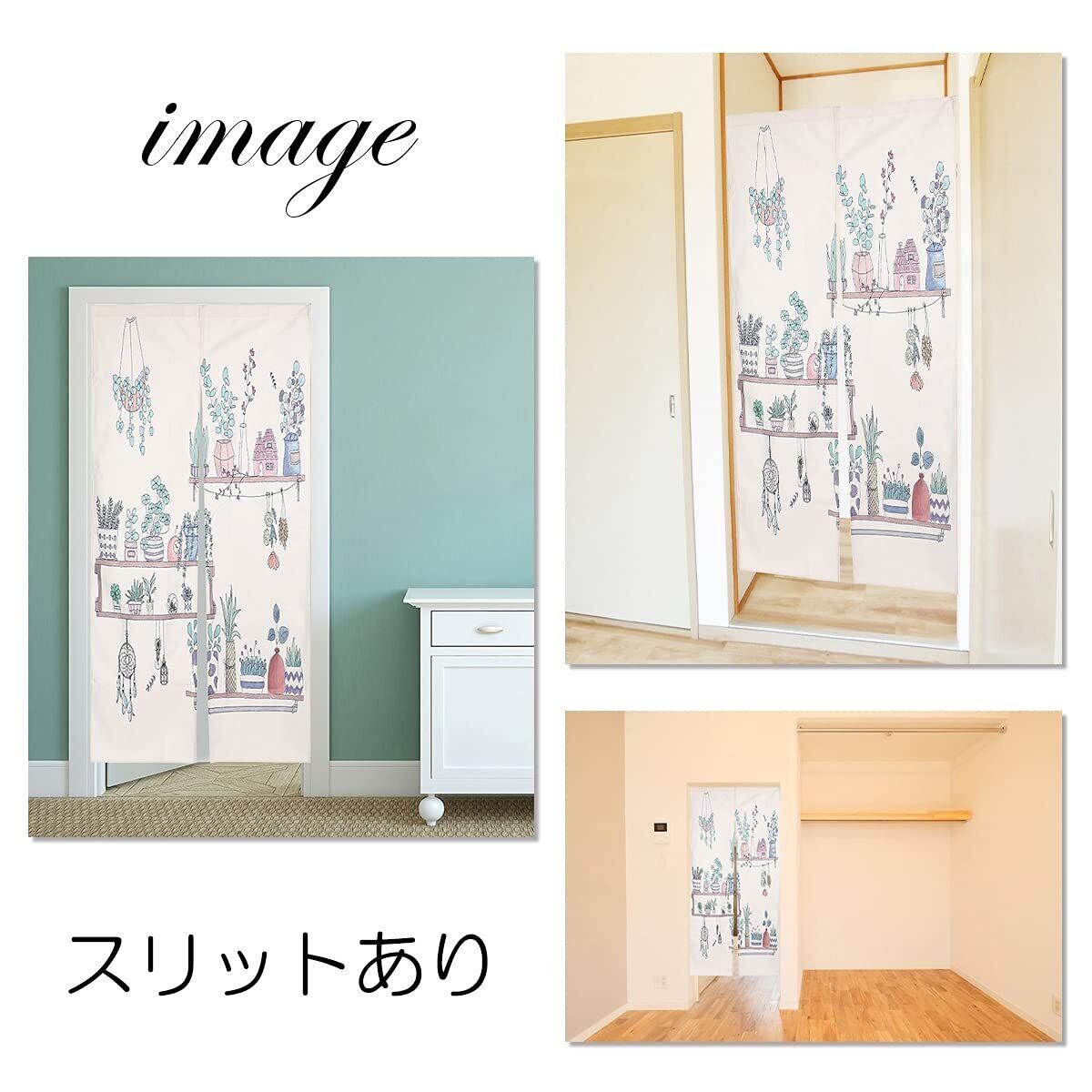 のれん おしゃれ ロング丈 180cm 北欧 プランター ボタニカル ナチュラル 観葉植物 グリーン ロング 可愛い 突っ張り棒 暖簾 間仕切り 押し入れ クローゼット 脱衣所 棚 玄関 インテリア 布 目隠し カーテン (デザイン4(スリットあり))