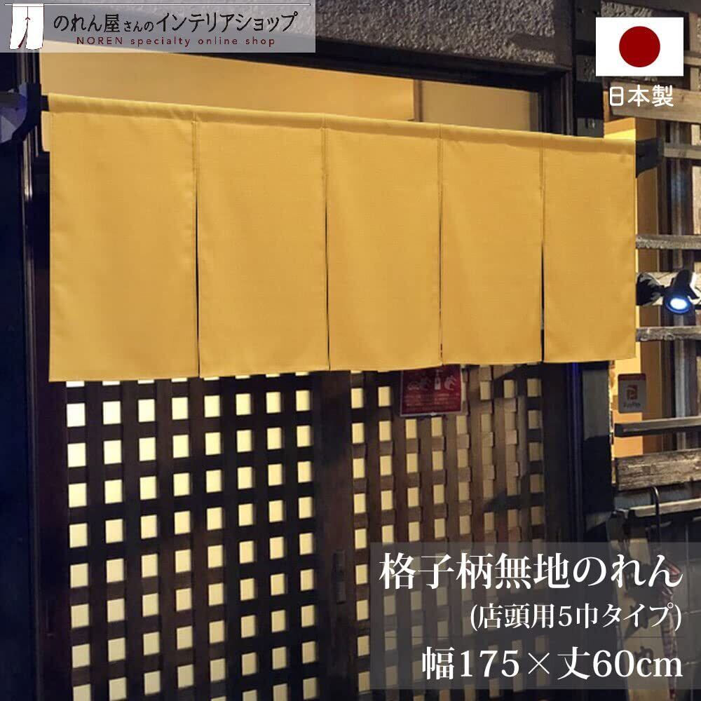 のれん工房 のれん 店舗用 飲食店 無地 5つ割れ 暖簾 幅175×丈60cm シンプル ナチュラル 格子柄無地 五巾 からし 98058