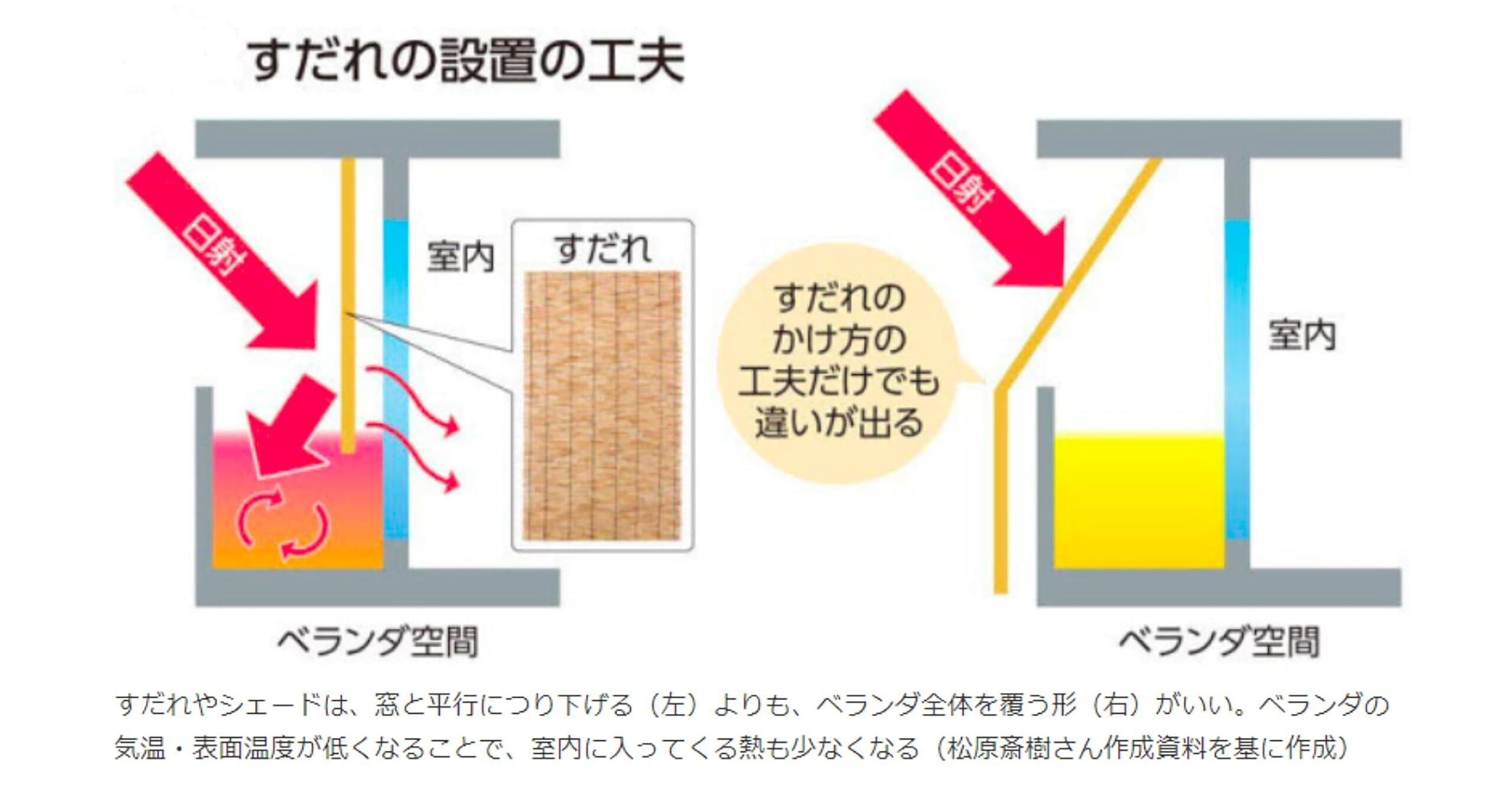 日差しを遮り、自然の風を取込み部屋を涼しくします。
