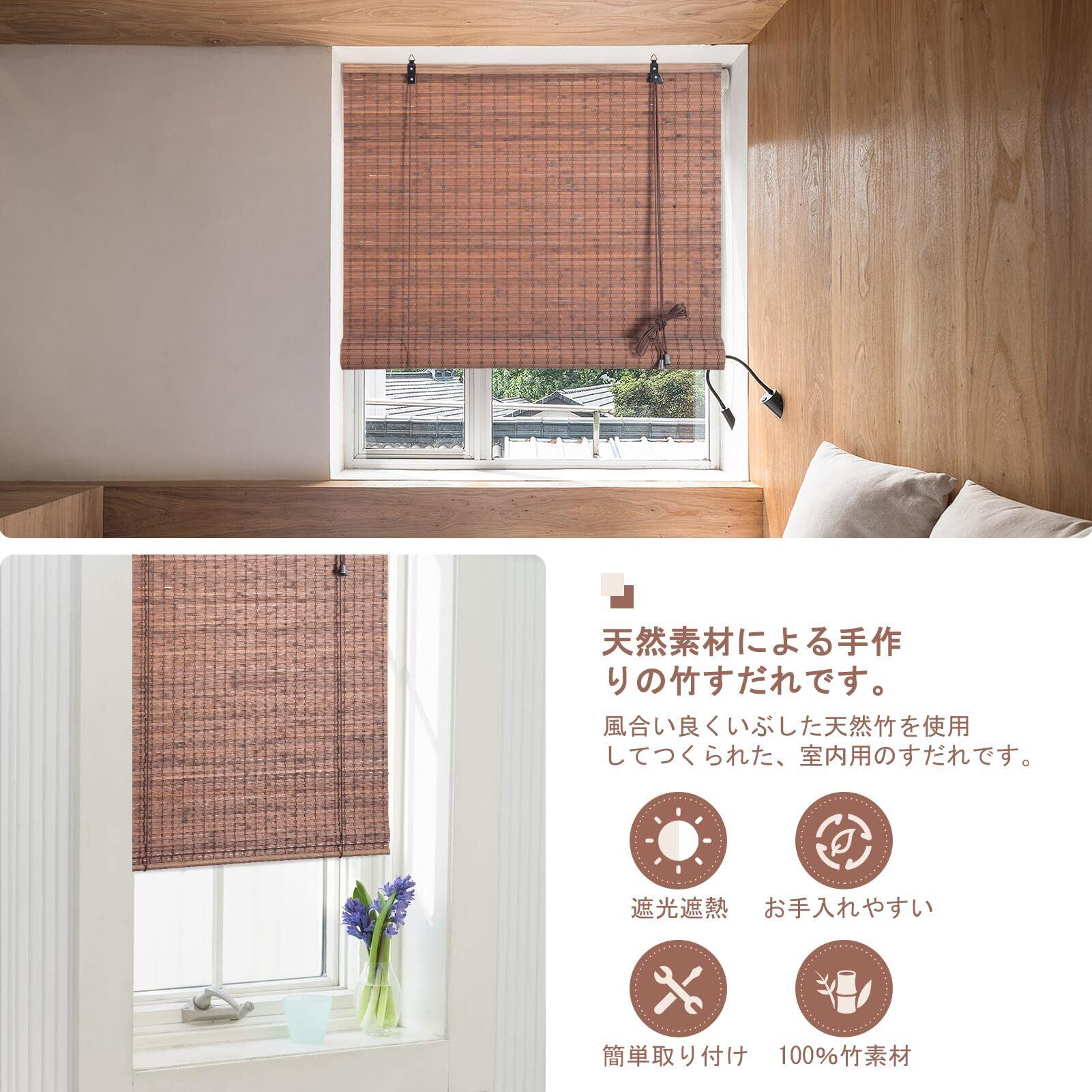 Yitian Bamboo Art すだれ 室内 幅88×丈180cm 2本セット ブラウン 竹製ロールスクリーン 簾 屋内 遮光遮熱 目隠し 日除け 日よけ防止 巻き上げ機能付き