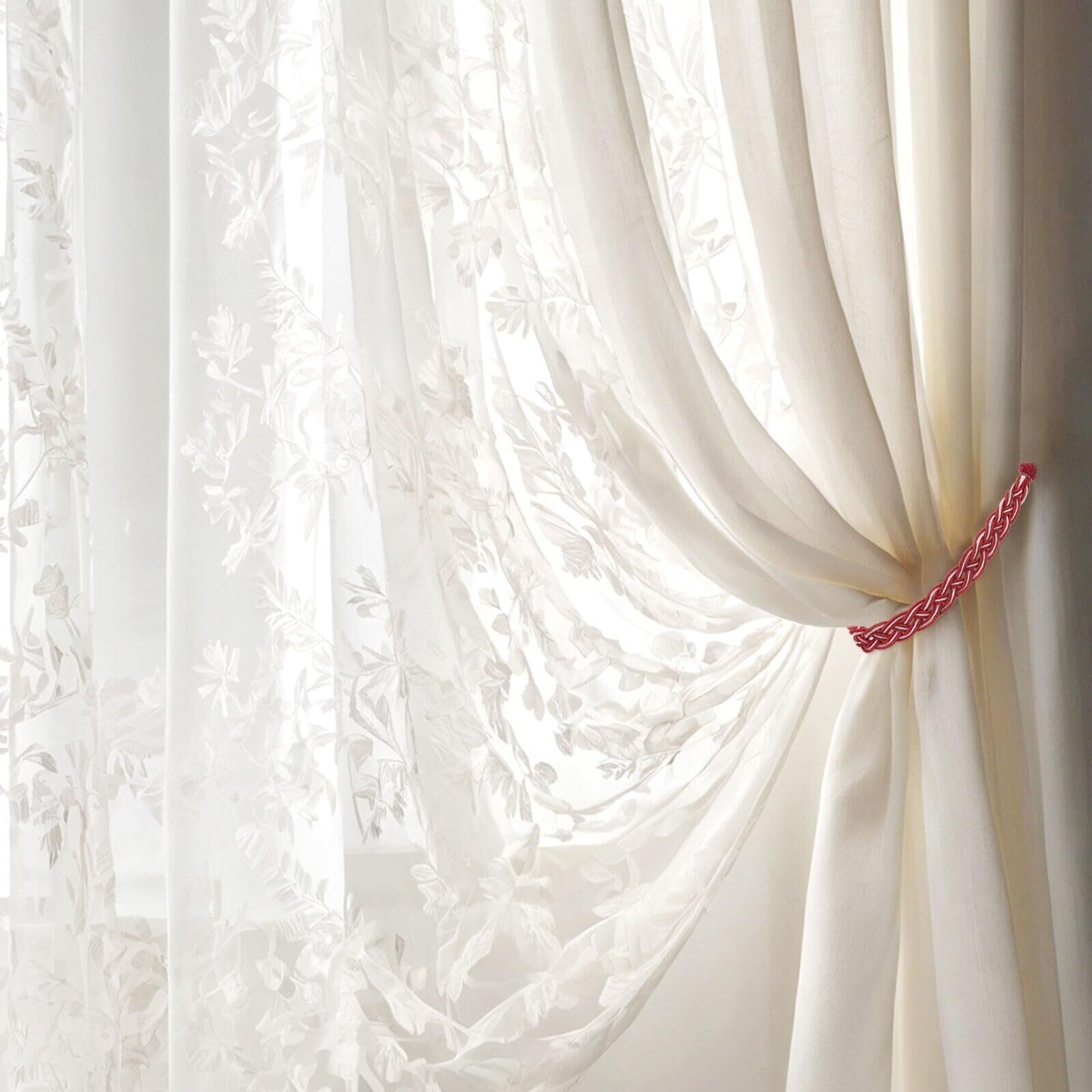 カーテンに直接結ぶか、フックと一緒に使用することができます。これらのエレガントなカーテンタイは、カーテンをきちんとまとめるだけでなく、窓に洗練されたタッチを加えます。