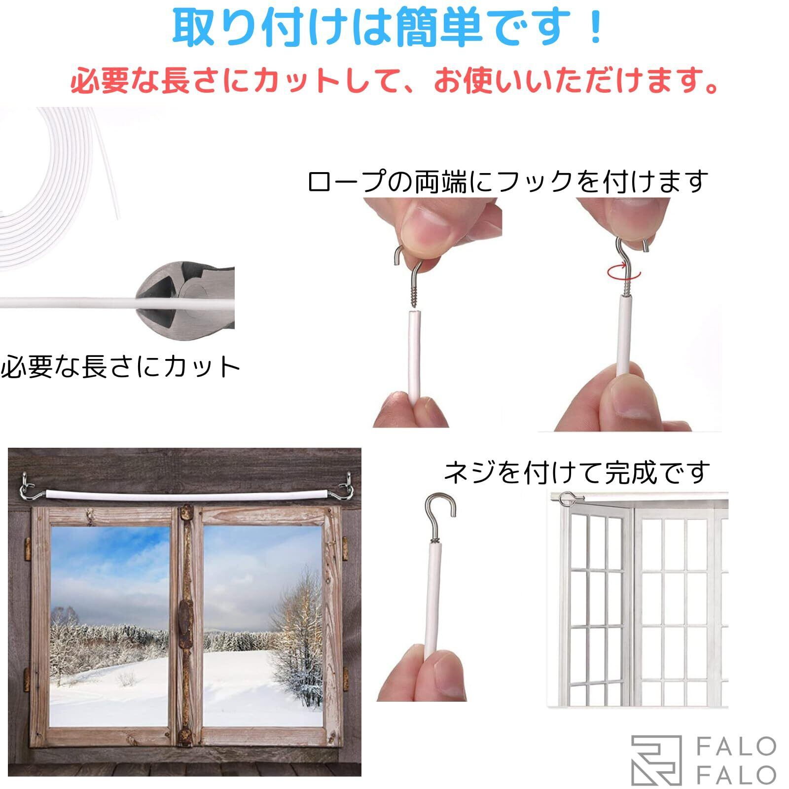FALOFALO カーテン ワイヤー ロープ 5m フック ネジ付属 すぐ使える 取付簡単 キッチン クローゼット 手芸 カーテン レール 手作り