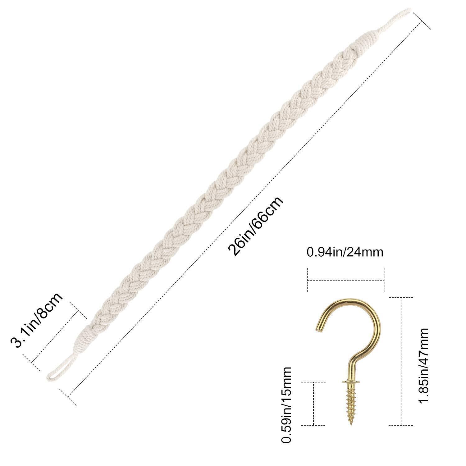 カーテンタッセル 2個セット Lewondr カーテン留め 三つ編み ロープタイプ 房掛け 取り付け簡単 フック付き ベージュ