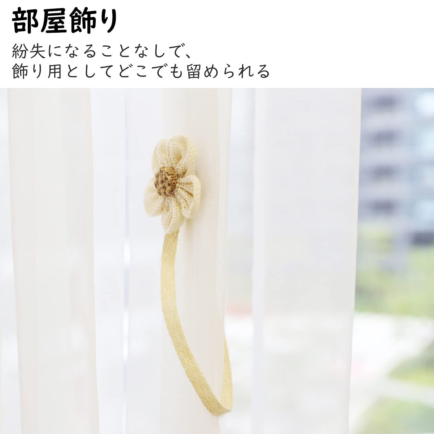 カーテンタッセル 2個セット Lewondr お花モチーフ リネン製 マグネットタイプ 留め飾り 取り付け簡単 オシャレ Lサイズ ホワイト&つちいろ