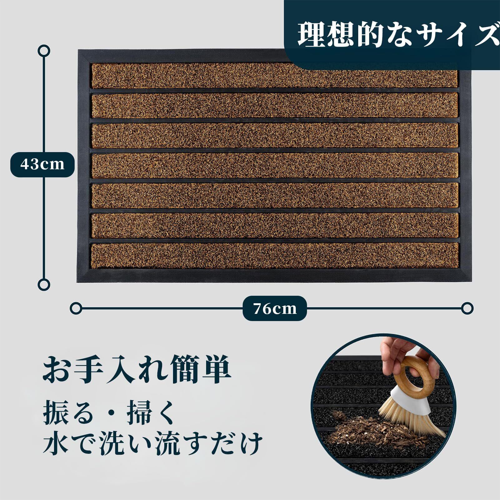 玄関マット 屋外 泥落とし おしゃれ マット 草模様 約45×75cm brown02