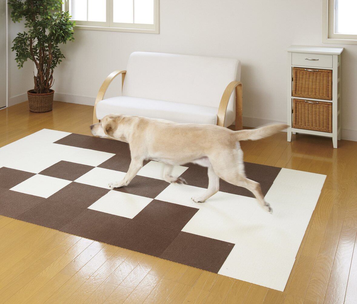 マットを敷くことで、フローリング床で滑っていたペットも爪を立てて歩くことができるので、足腰の負担を軽減できます。