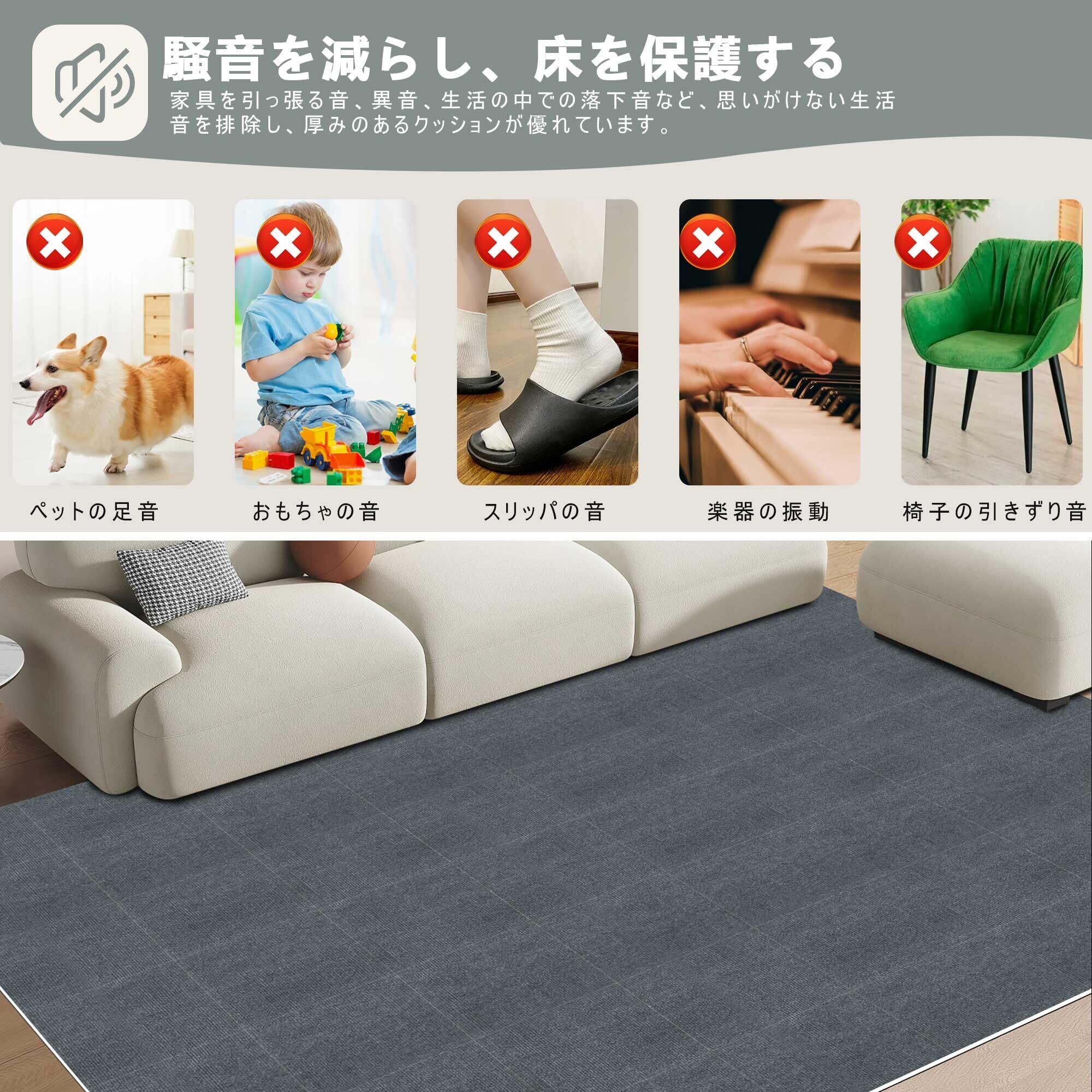 【床暖房対応・幅広い用途】床暖房の上に敷いても使用でき、寒い冬でも暖かく過ごせます。お部屋の大きさや形に合わせてぴったり設置でき、ハサミで簡単にカスタマイズ可能。部屋の隅や壁際にもぴったり敷けます。リビングのカーペット、キッチンの滑り止めマット、玄関の汚れ防止マット、廊下の防音マットなど、様々な場所で活躍します。賃貸のお部屋でも安心して使えます。