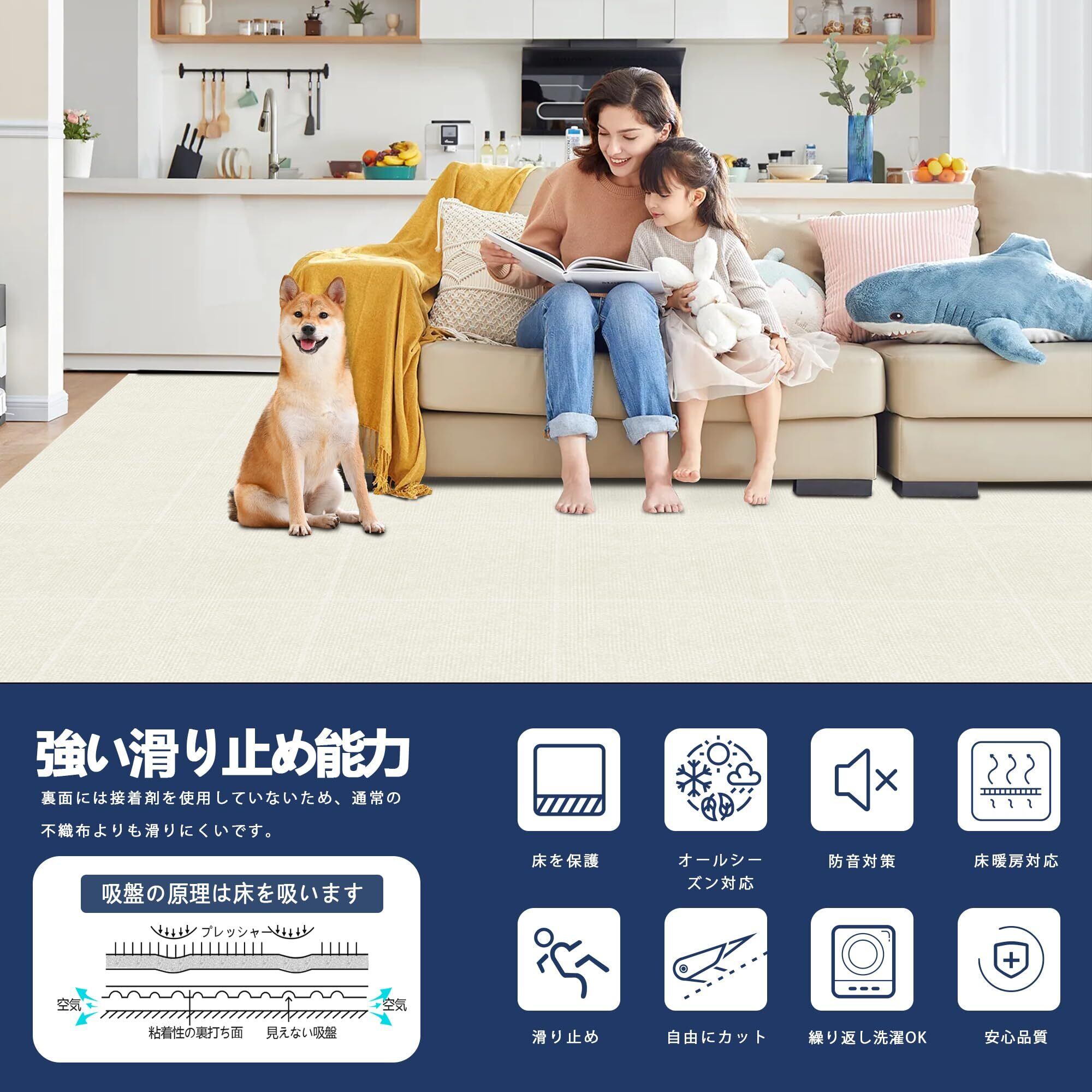 【滑り止め、スーパー吸着力】 床と接触面はアップグレードされたTPR素材、従来品より吸着性UP、耐久性もあり、上で走り回っても、掃除機をかけても、ずれにくくストレスがありません。長時間に使っても、四角を折りません。剥がすときに縁からしたら、簡単に床から外れるし、床にのりの残りや痕跡がなく、繰り返し使用ができます。
