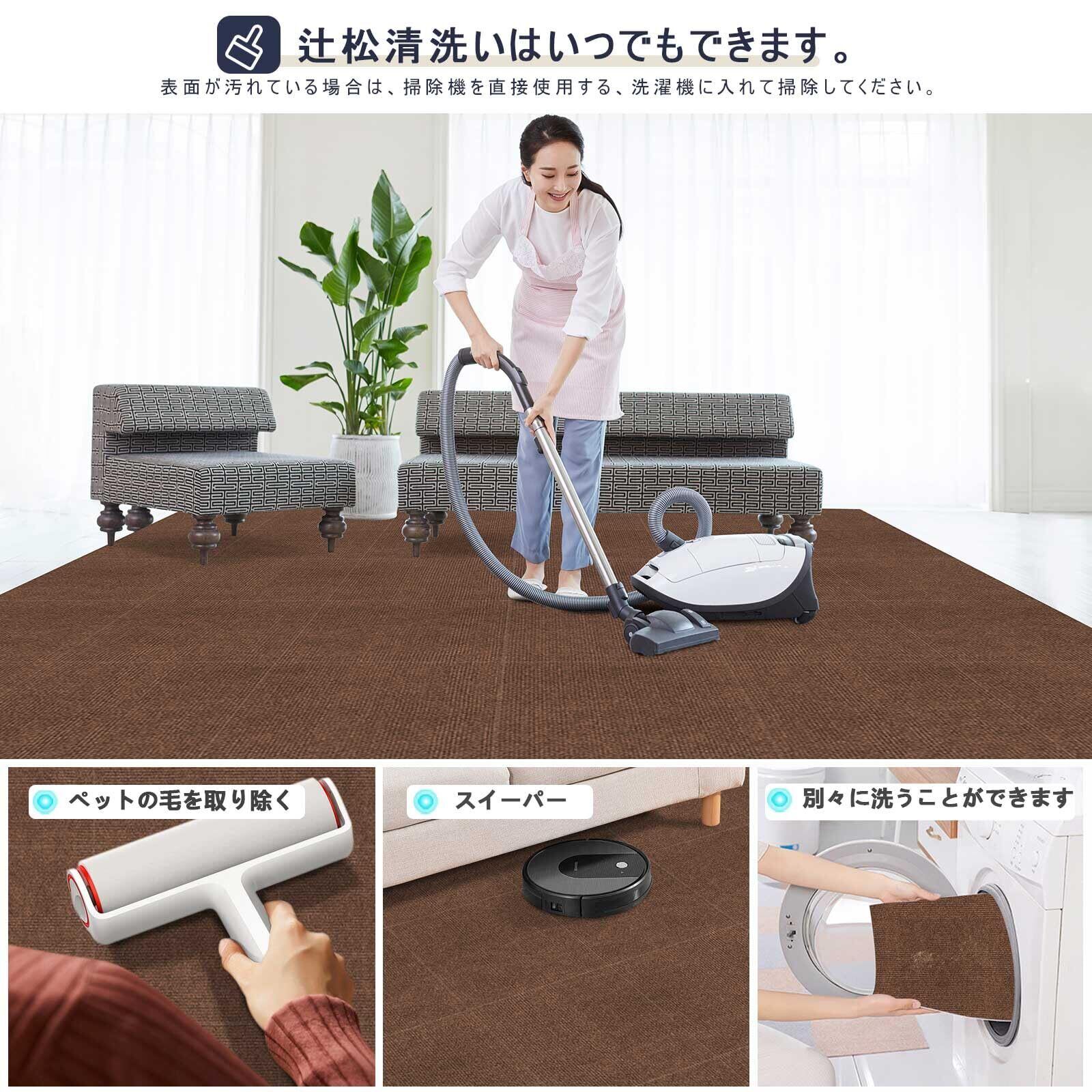 【掃除がやすい】超強な吸着力ので、掃除機をかけても、掃除ロボットをかけても、ずれにくくストレスがありません。それとも、汚れた部分だけ外れして洗えます。スポンジなどを使うとさらに効果的です。(洗濯機使用を勧めません)。