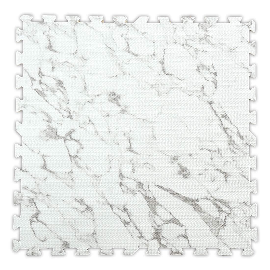 タンスのゲン ジョイントマット 大判59cm 厚み10mm 6畳用 32枚組 防音 保温性 床暖房対応 ノンホルムアルデヒド サイドパーツ付き 大理石調 マーブルホワイト 31800003 (65136)
