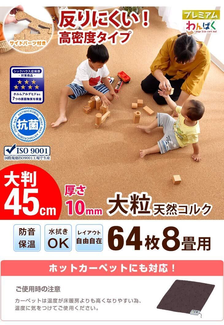タンスのゲン コルクマット 45cm 厚み10mm 1cm 8畳用 防音 高密度 床暖房対応 低ホルムアルデヒド サイドパーツ付き 64枚組 31800009 10AM (68774)