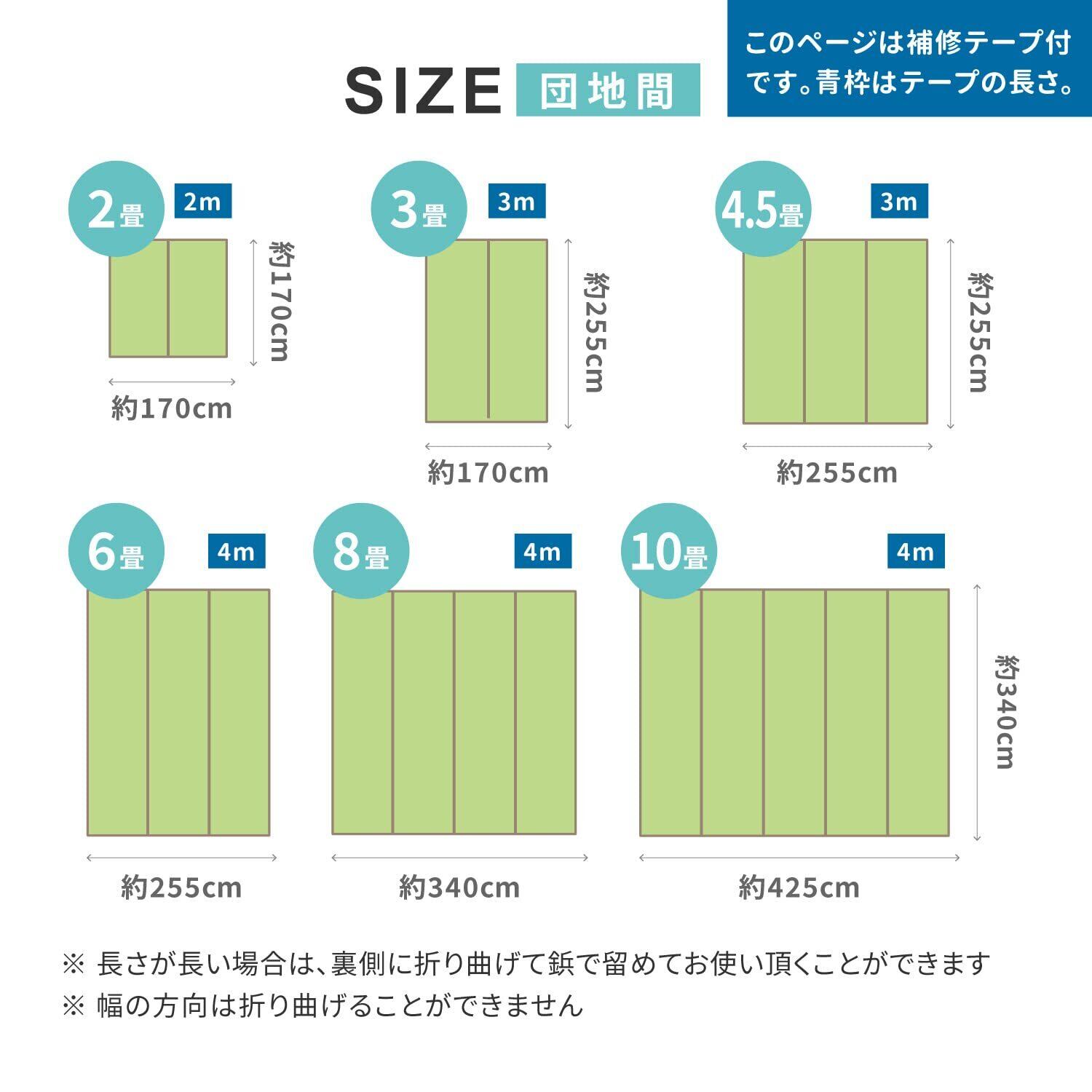 表面は、撥水加工で水に強く、肌触りのよい い草素材です。ご家庭で簡単にハサミで自在に切ることができます。柱や移動が大変な重い家具などがある部屋にもぴったり敷き詰めることができます。補修用の縁テープ付きです。テープ式なので、面倒な縫製や糊付けは不要です。