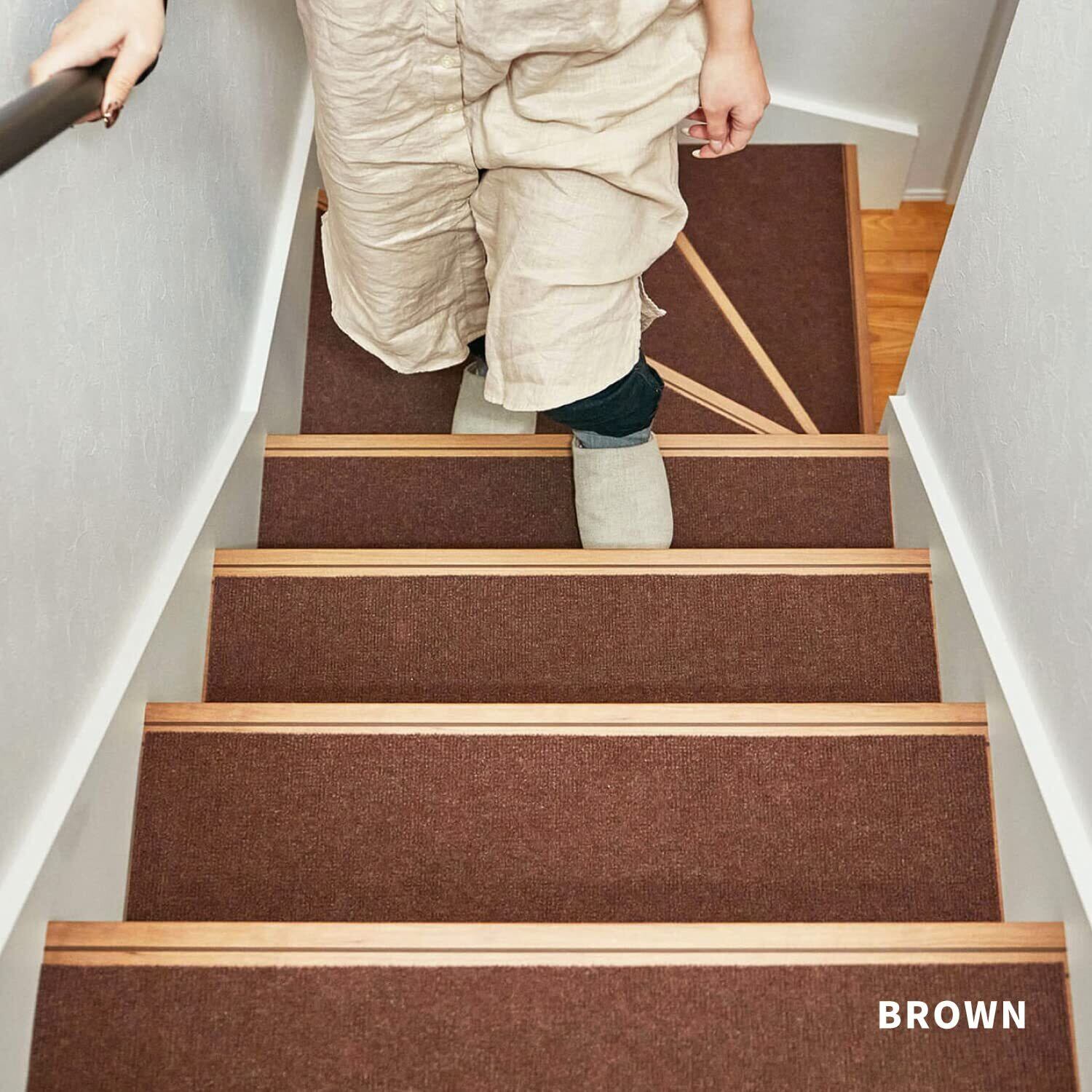萩原(Hagihara) 階段マット 踊り場付き (ブラウン,約90×21cm 15枚・約90×90cm 2枚) 吸着マット 洗濯機OK カットOK 滑り止め 防音 キズ防止 日本製
