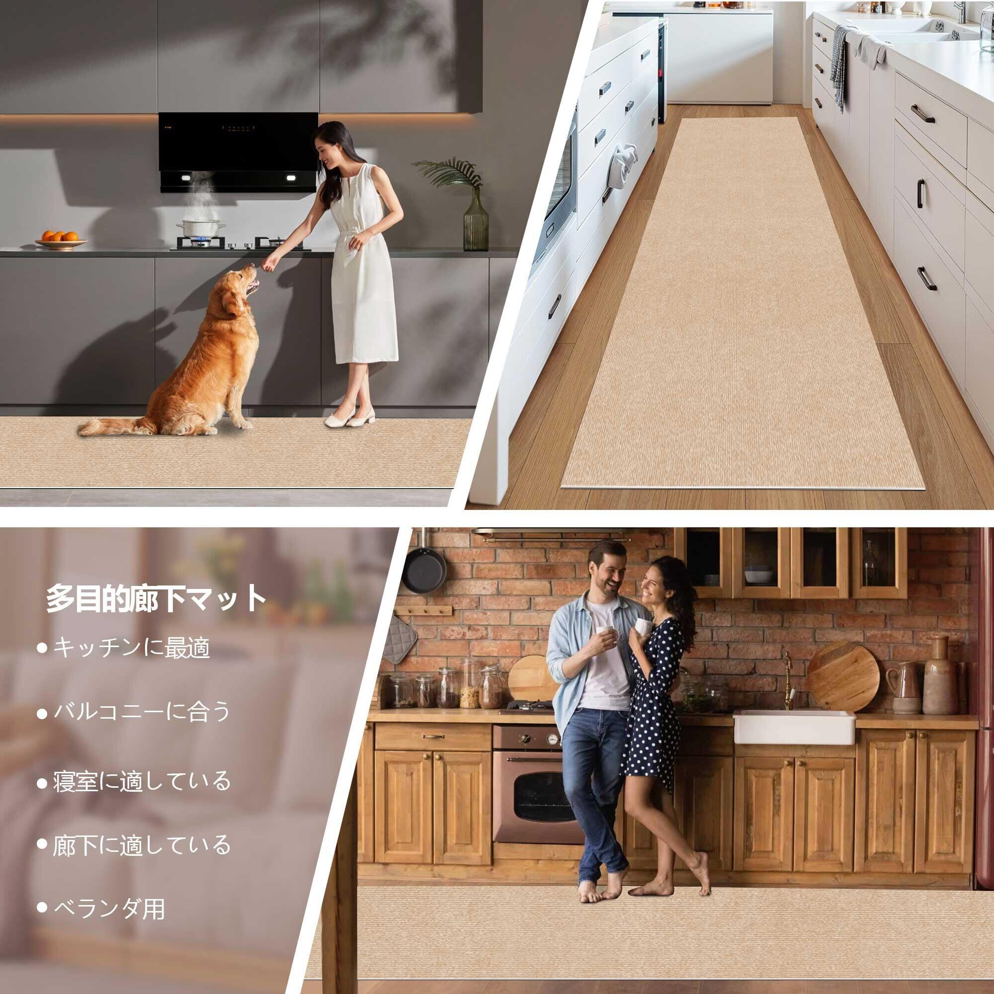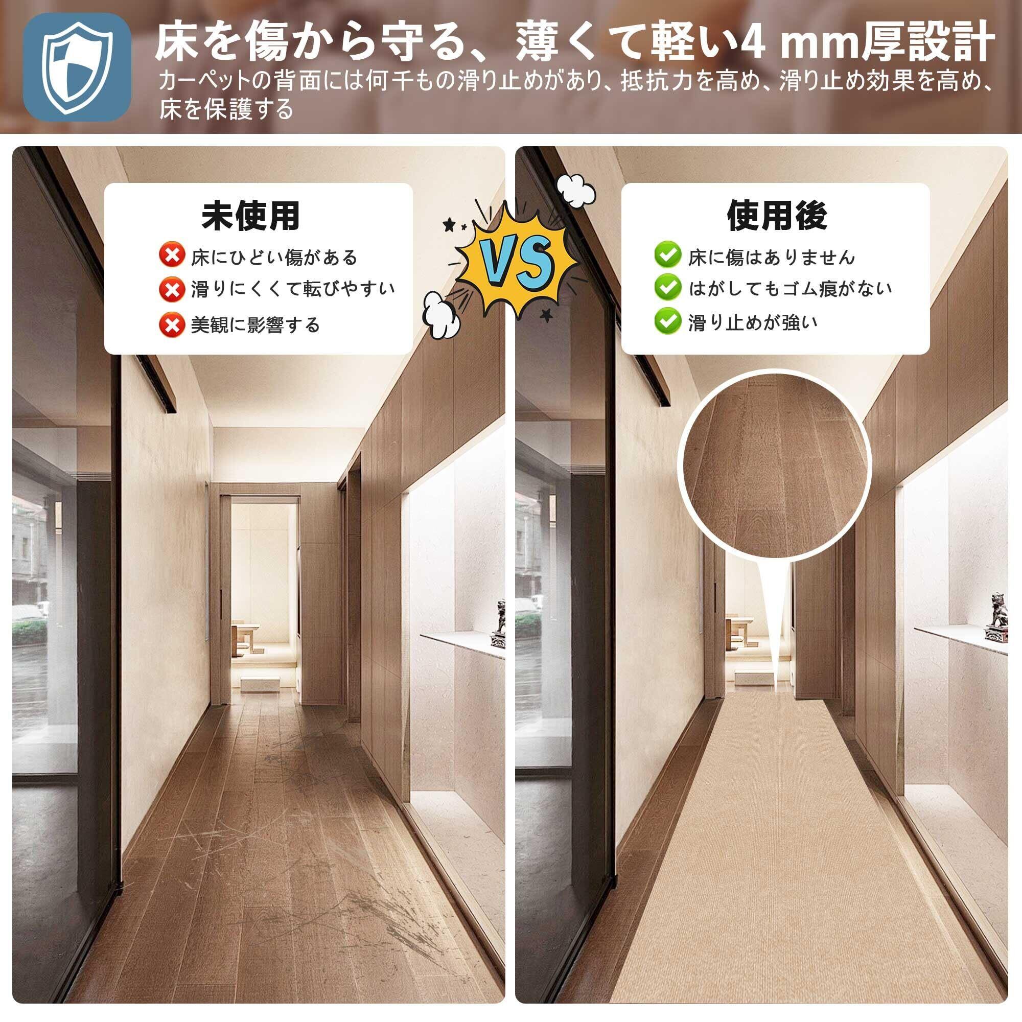 【シンプル設計】廊下保護マットはPU&ポリエステル不織布製。廊下/玄関/階段/キッチンなど多用途に展開可能。床のキズ・摩耗を防止し、圧力分散で床のへこみを軽減。歩行時の衝撃吸収に優れ、床保護に最適です。※濡れた場合は速やかに乾燥または交換ください