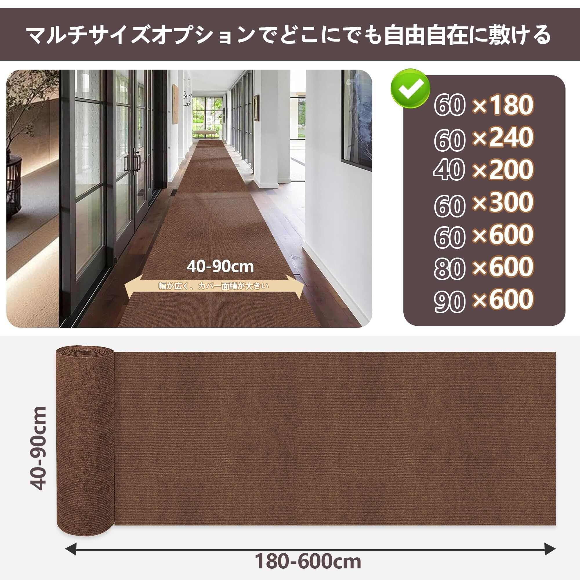 【 限定ブランド】廊下敷き・階段マット Piiyoow 廊下用カーペット、カーペット ロール、玄関 マット、シンプルでスタイリッシュ、裁断しやすく、床暖房対応、防音効果が良く、滑り止め、剃り防止、ペットフレンドリー、家庭、オフィスなどの場所で通用【70*360cm】【ブラウン】