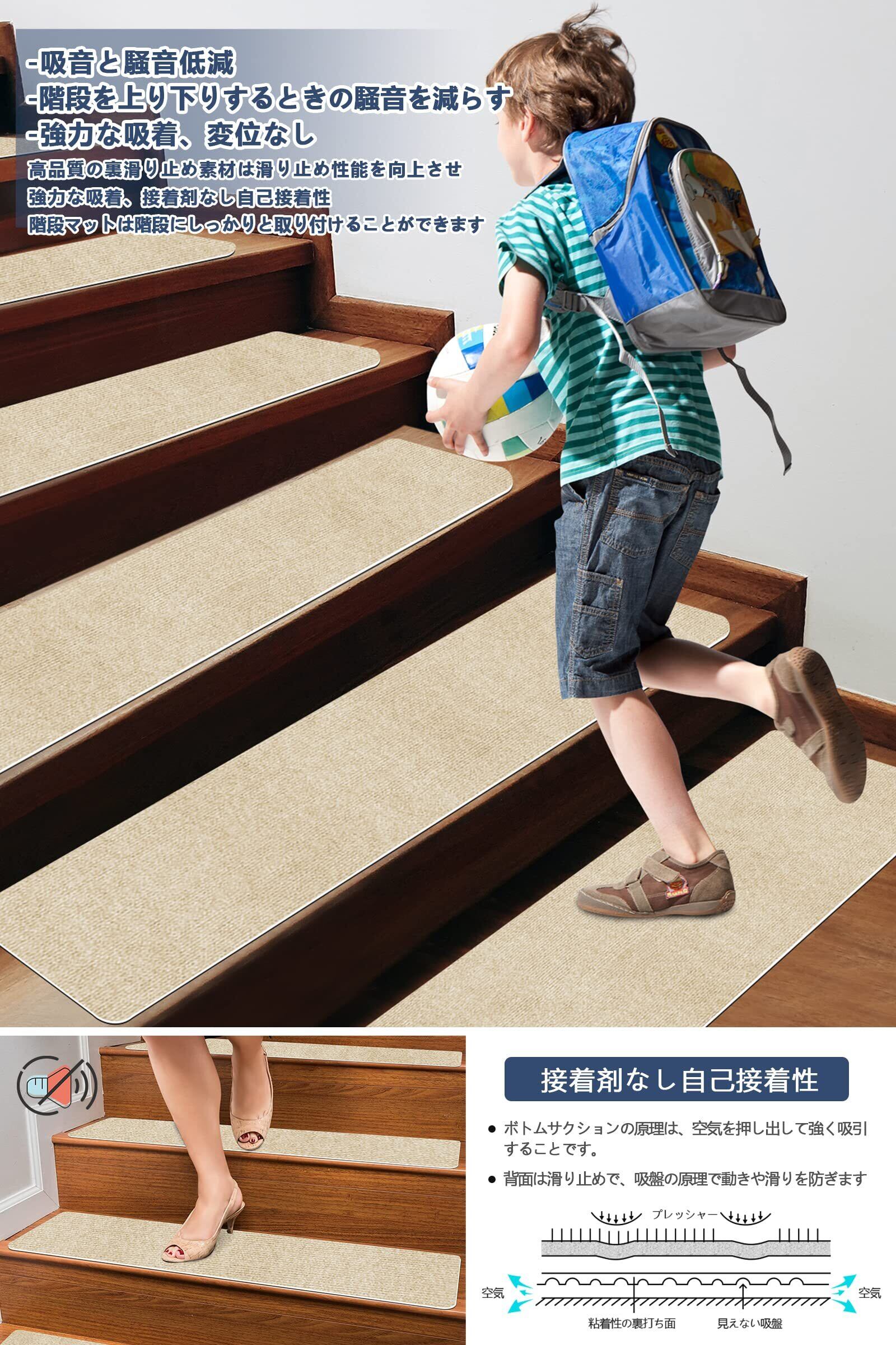 ●【消音 マット · ペットにやさしい】愛犬が階段降りるとき、滑りやすく、関節が傷つき、粘着力が高く適度な厚みの滑り止めパッドです。滑り止めには最高です,簡単に取り付け。階段用 防音マット表面はやわらかいポリエステル繊維でできており、足に優しいです。 裏面はしっかりと密着し、吸音性に優れたポリエステル素材で、 階段を上り下りする際の騒音対策や衝撃を軽減します。