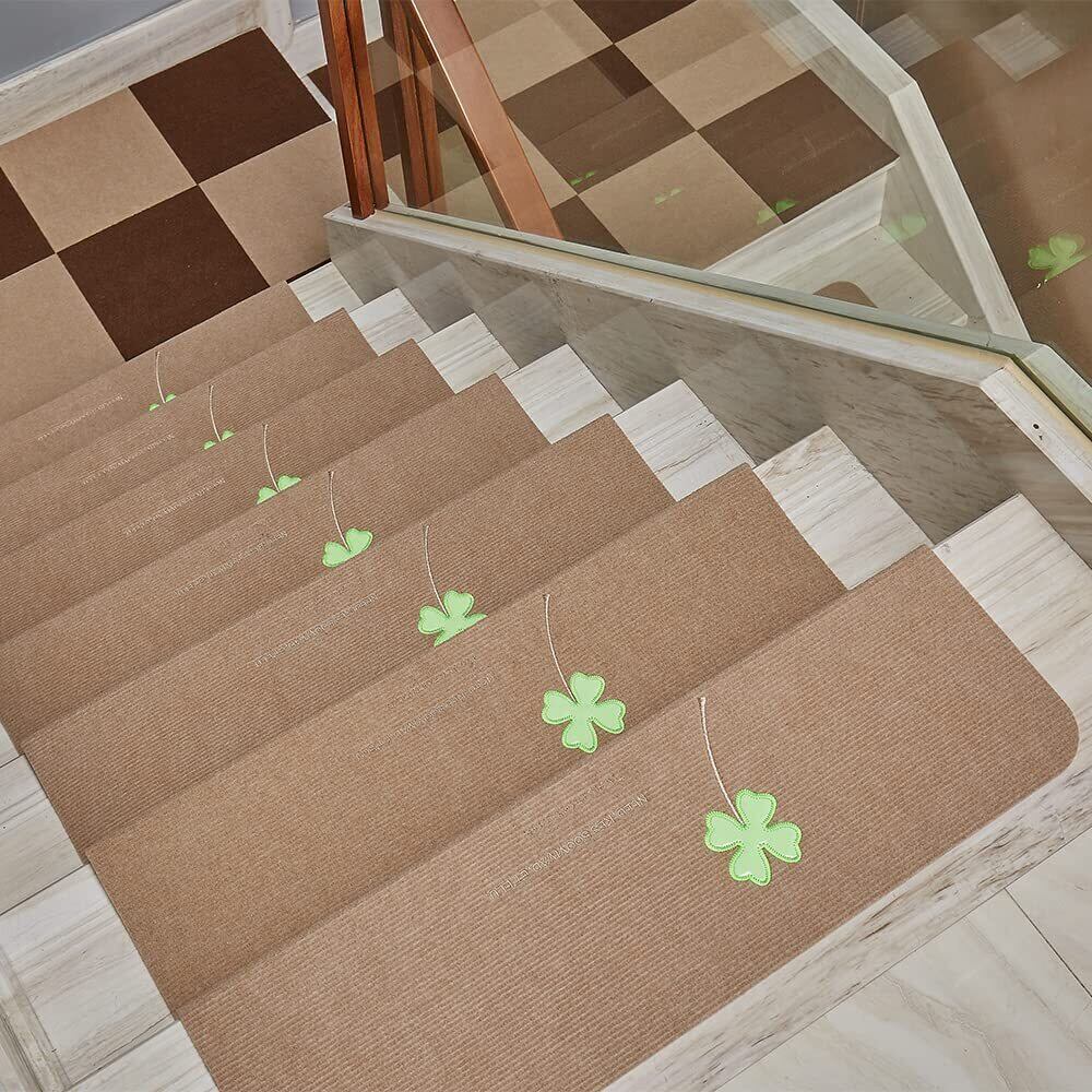 YOXU 階段マット 蛍光 滑り止めマット 15枚入りセット 吸着マット 転倒防止 簡単取り付け 防音 丸洗いOK キズ防止 安全対策 DIY (ベージュ 四つ葉, 70*22cm)
