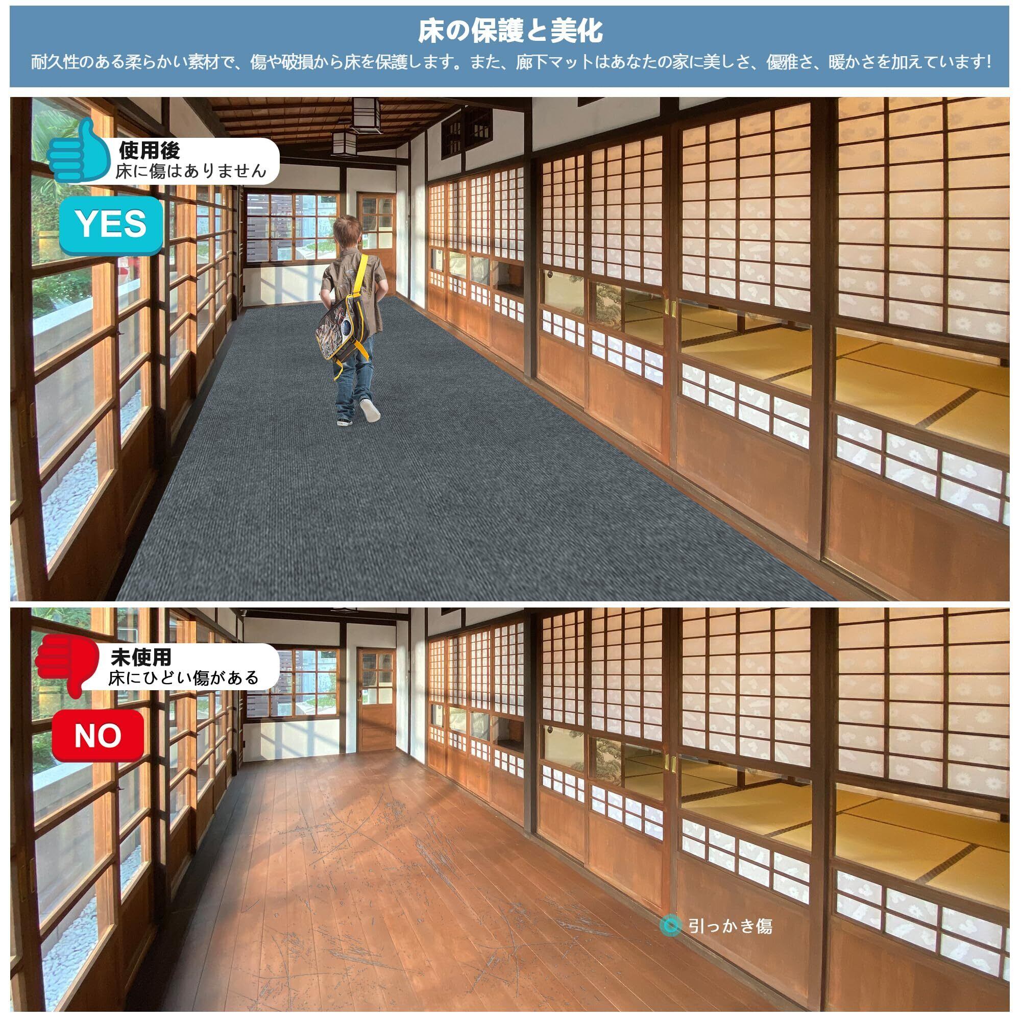【快適素材】廊下のフロアマットは、表面が柔らかく快適で、厚さは約4mmです。足の裏とフロアマットの底との間の摩擦を減らし、家の木製の床を保護し、あらゆる床に適用します。