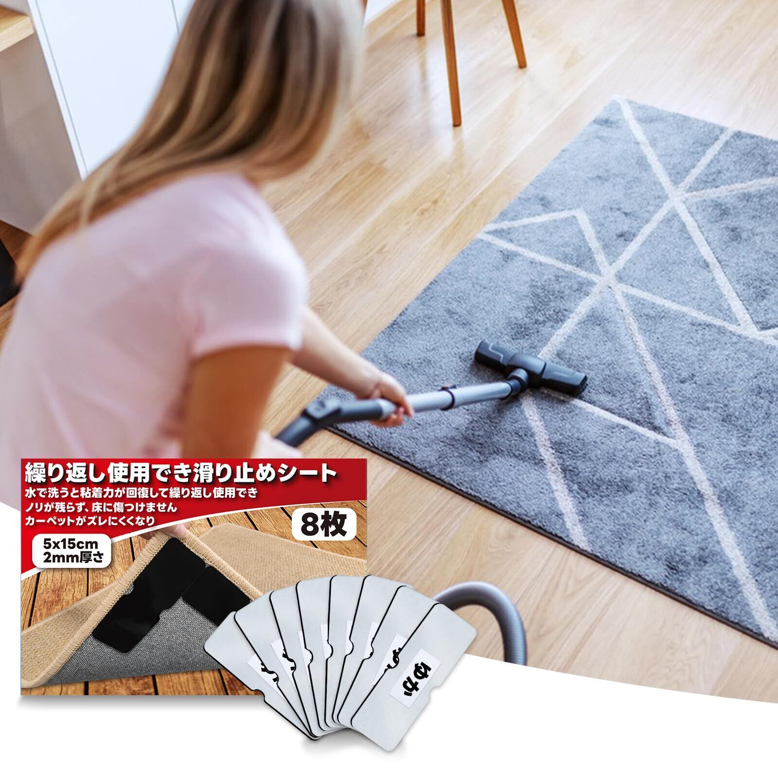 カーペット滑り止めシート ラグマット【ネット加固・水で洗うと粘性が回復・跡が残らない】 絨毯滑り止め 最新改良 滑り止めマット ラグずれ防止 転倒防止テープ カーペット捲れ防止 キッチンマット 玄関マット滑り止め 洗濯可能 繰り返し使用できる 長持ち長方形 サイズ:153×52mm(8枚セット)
