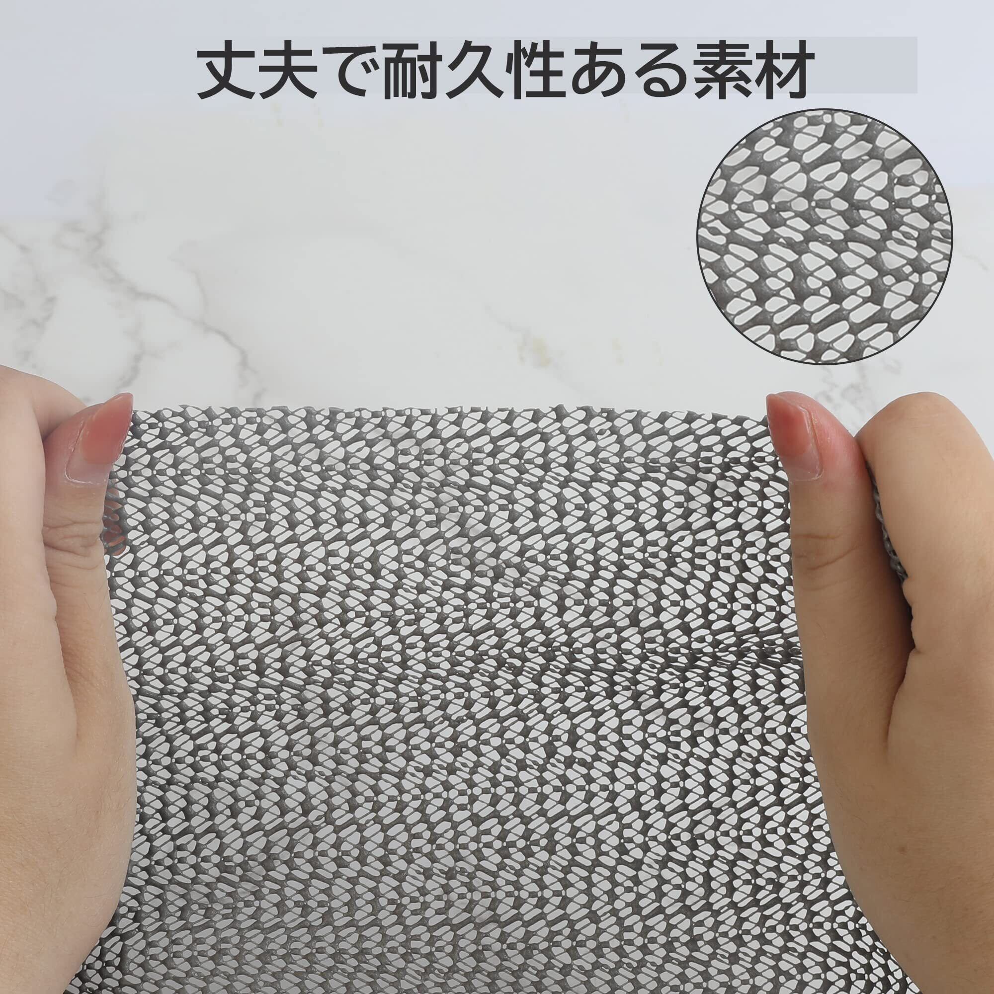 【丈夫なエコ素材】滑り止めマットは環境に優しいラテックス(95%)素材を使用し、柔軟性と弾力性が強くて破れにくい。内層にネット構造を施したことにより耐久性が強化されています。しっかりとした滑り止め粒子はサイズが均一の上粒子間の隙間が細かくなっております。耐摩耗性と耐衝撃性に優れるマットです。