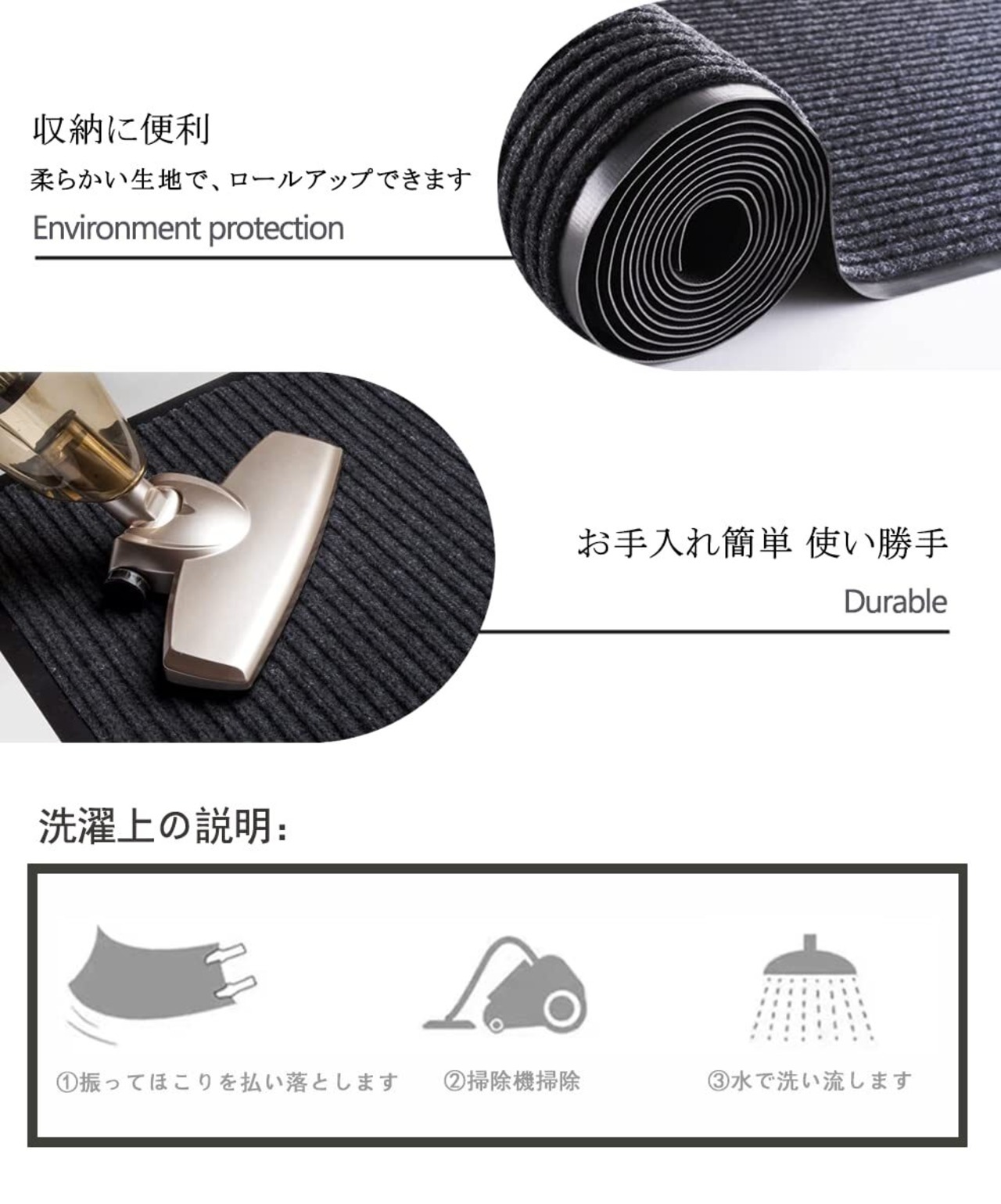 【泥落とし、吸水】屋内、屋外でお使いいただける玄関マットです。表面の凸凹が屋内に持ち込みたくないホコリ汚れや水などをしっかり捕らえ、吸収する機能的なマットです。長い梅雨の日でも大雪の日の中でもフロア汚れを最小限に抑えます!また、マットが抗菌性・防臭性、中も快適にご使用いただけます