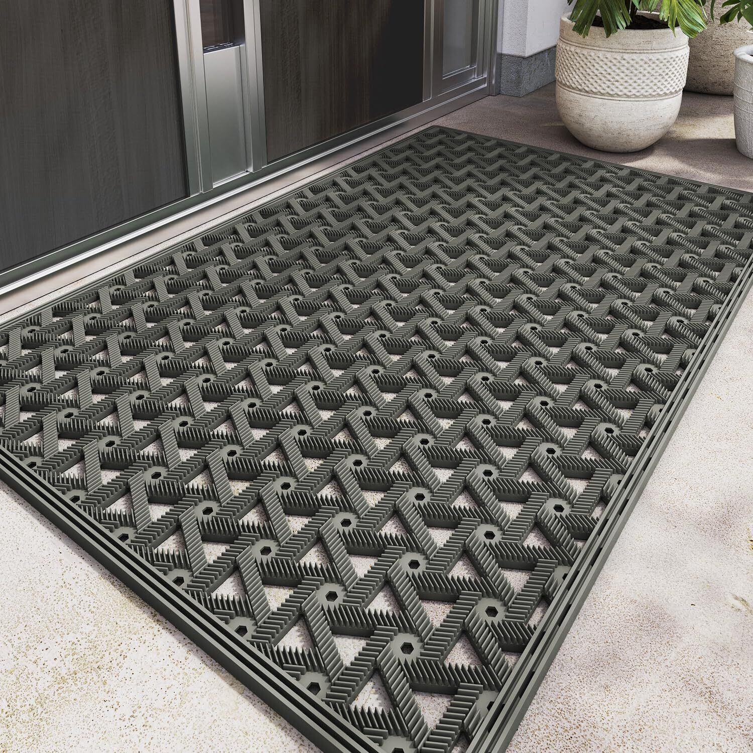 DEXI 玄関マット 屋外 泥落とし 泥抜け 滑り止め 排水 耐久性 無地 シンプルデザイン 凸凹 雨の日 雪 家庭用 業務用 ドアマット バルコニー 工場 店舗 48.5x75cm グレー