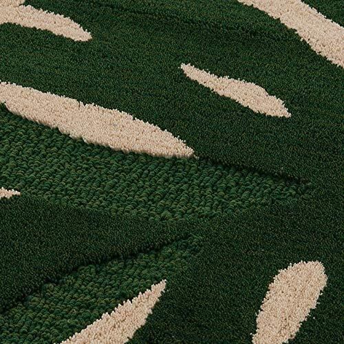 モンステラの葉を大胆にレイアウトしたデザインのトイレマット。葉の部分の縫製・色合いを替えることで、深みと奥行き間を出しています。裏面すべりにくい加工。