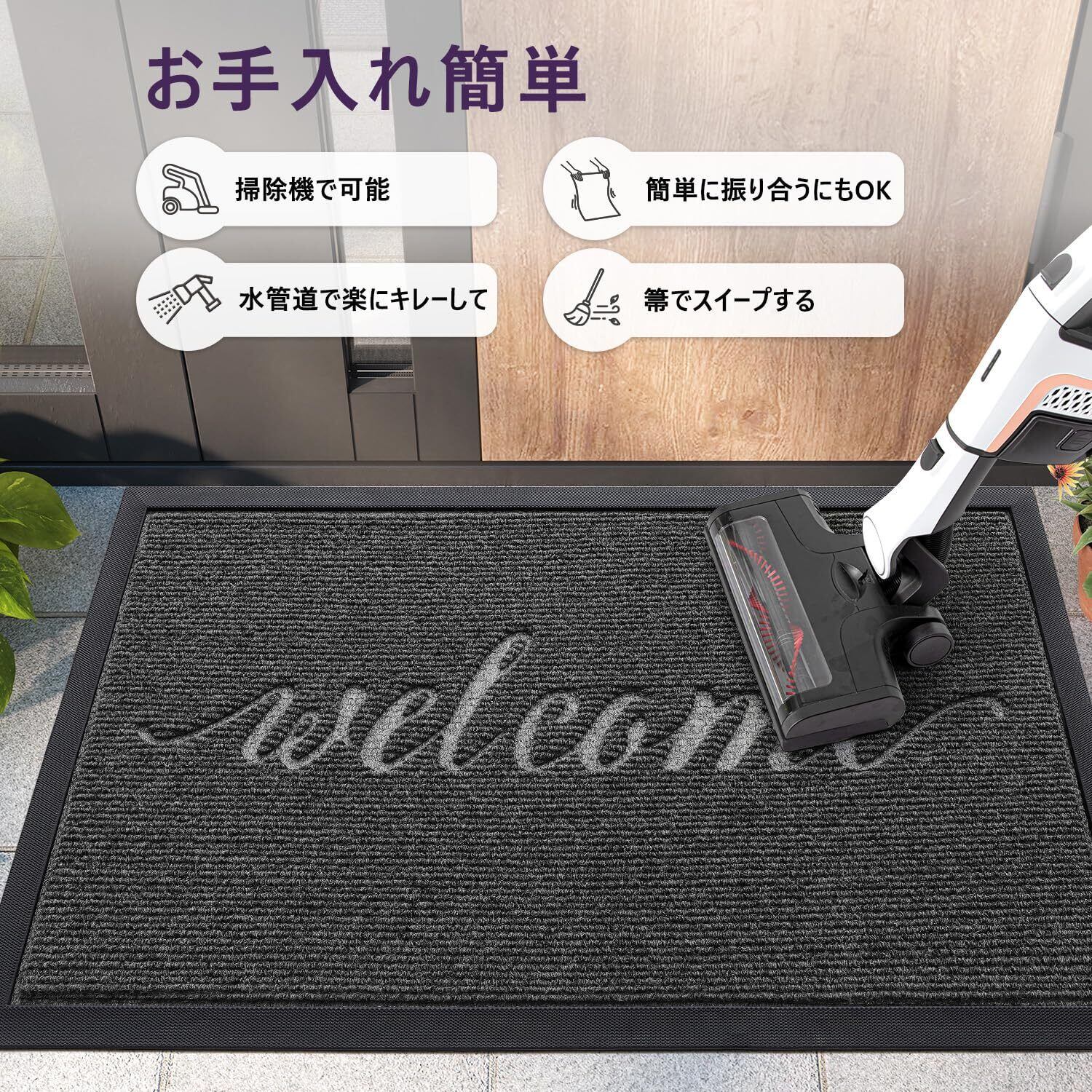 【汚れ排除機能】玄関マットの表面は 繊維の毛が硬くて、摩擦性があります。ドアマットに立ち上がると、靴底の土が落としやすい。屋外からの泥や土砂などを排除します。雨や雪などの汚れもすぐ吸収します。エントランスの清潔を守ります。
