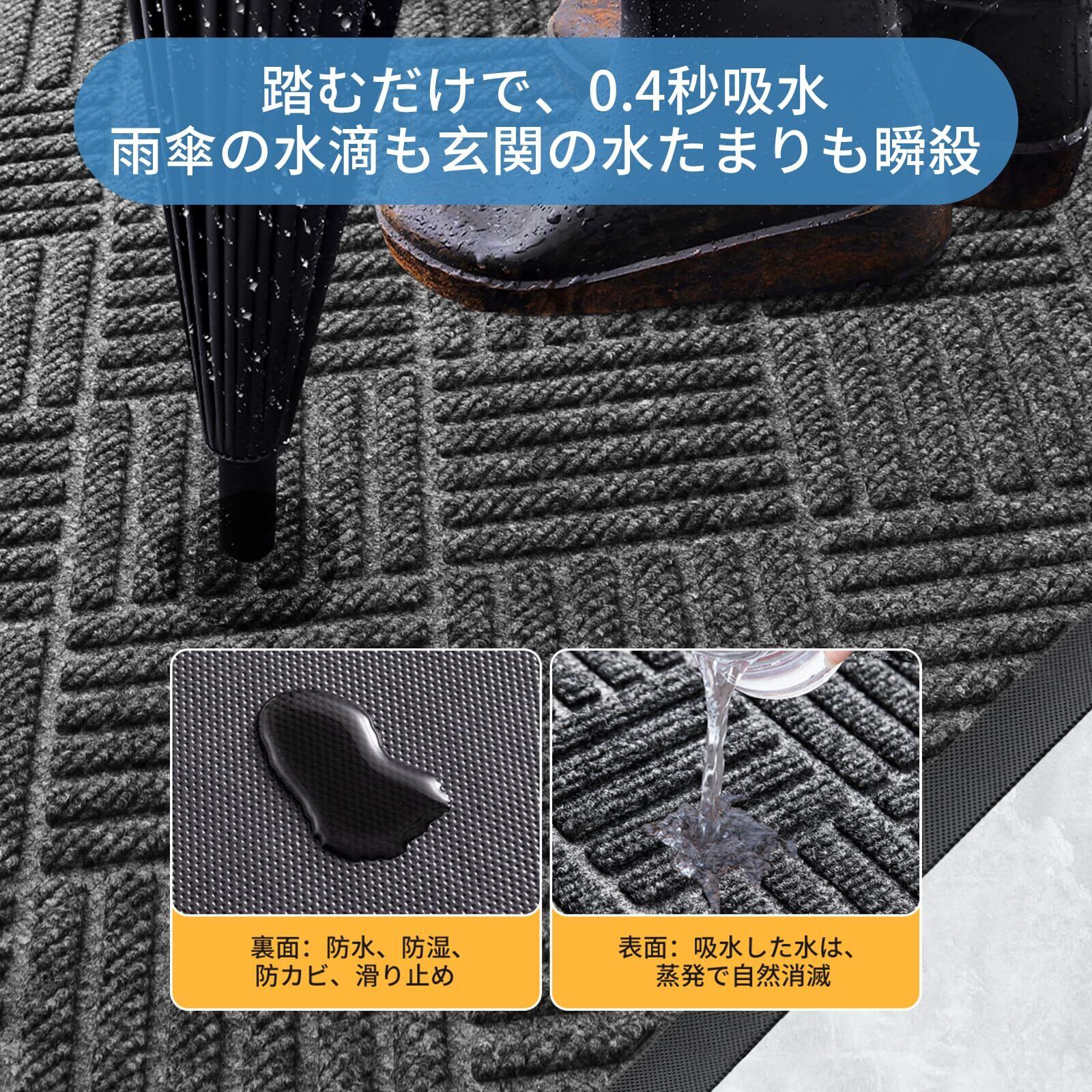 高耐久滑り止めマット:全天候型のスリップ滑り止めマットは、高密度ポリエステル製の三層構造、紫外線、湿気、大雪環境に耐える耐久性を実現しています。Aimisskが独自に開発した部屋マット染色技術は、他のスリップ滑り止めマットと比較して、長期間使用時の色あせ率を最大87%低減しています。玄関マットは深い溝加工デザインンの溝を採用し、靴底の砂/雪/ペットの汚れを効果的かつ簡単に取り除くことができます。ゴム マット表面の柔軟素材で清掃性と快適な踏み心地を両立家庭用および商業用として実用性とおしゃれ性を兼ね備えている