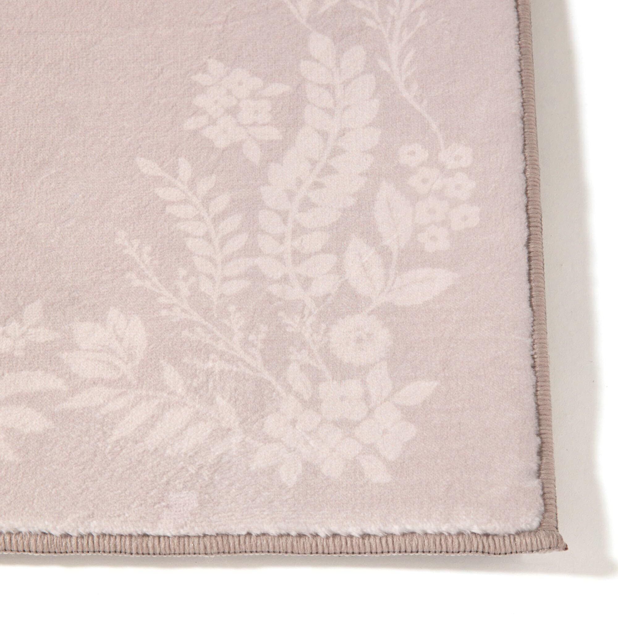 優しいピンクカラーにお花のフレームをプリントし、スイートにもナチュラルにも合わせやすいデザインに仕上げました。 薄めで軽いので敷いたり、仕舞ったりもラクラク。80×50cmサイズで玄関やベッドサイドでお使いいただくのがおすすめです。 裏には滑り止め加工を施しているので安心してお使いいただけ、おうちでお洗濯ができるのも嬉しいポイントです。 柄・サイズ違いも豊富なのでお部屋のテイストや広さにあわせてお選びいただけます。