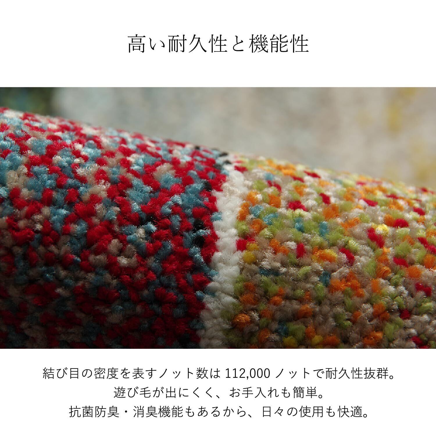 素材:ポリプロピレン100% 112,000ノット ※フリーゼセット糸使用 パイル長約9mm