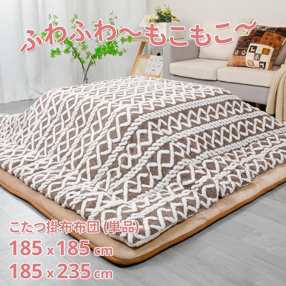 JEMAジェマ こたつ布団 こたつ用布団 こたつ掛け 正方形 大判 こたつふとん 単品 185x185cm あったか こたつ掛け布団 厚手 ジャガード リバーシブル 両面使える ふわふわ ぽかぽか ぬくぬく 冬用 洗える 毛抜けない ブラウン