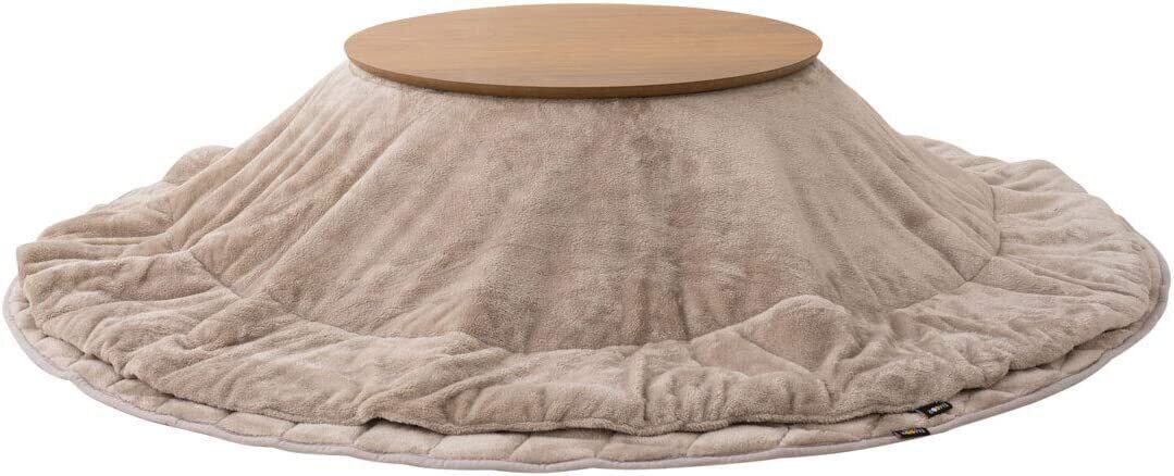 【サイズ】<円形>こたつ掛け布団:直径 約200cm/こたつ敷き布団:直径 約190cm 【こたつ掛け布団】表地:ポリエステル100%(280g/m² ロングパイルフランネル8mm エムールヒートプラス使用)/中材:ポリエステル100%/裏面:ポリエステル100%(マイクロフリース)