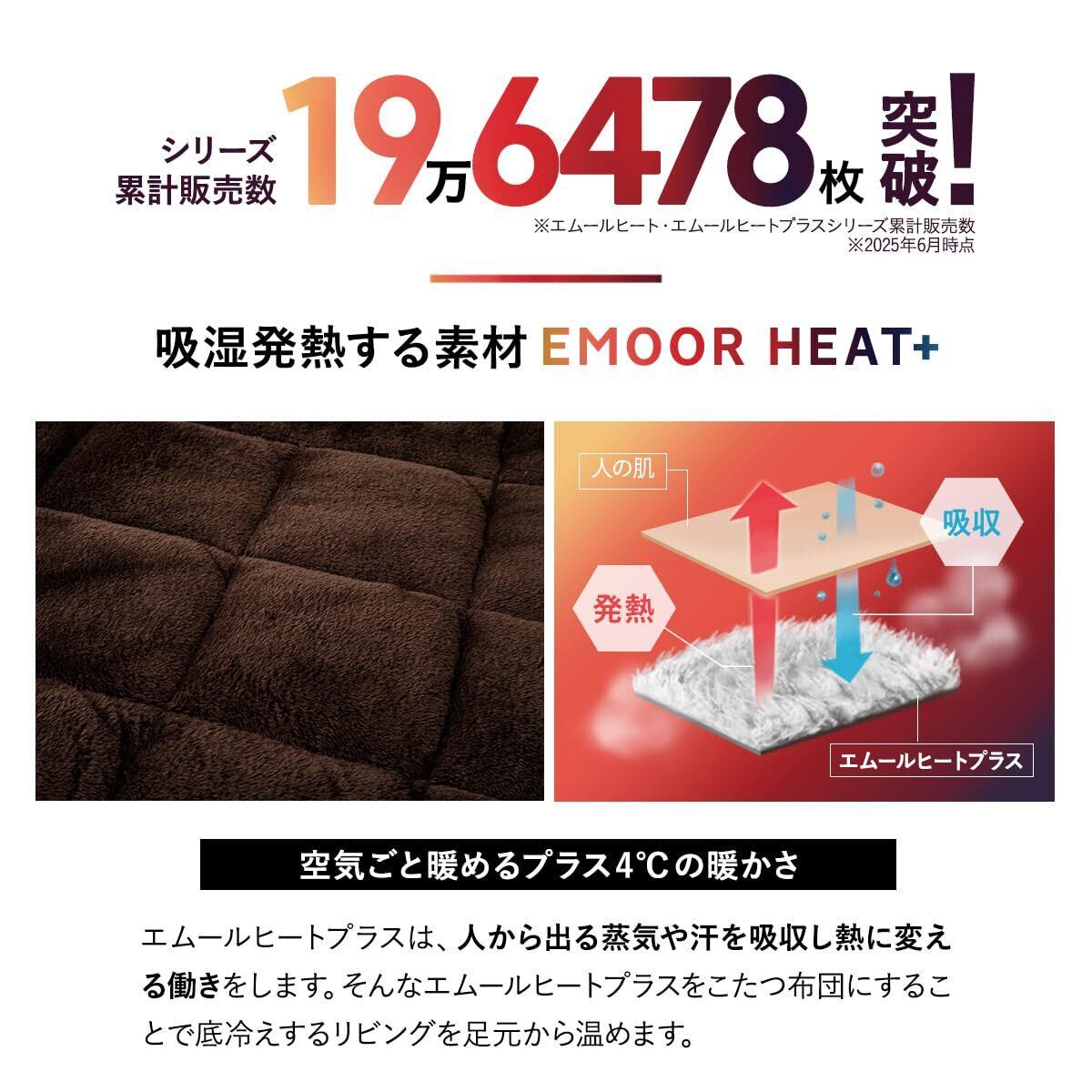 【こたつ敷き布団】表地:ポリエステル100%(280g/m² ロングパイルフランネル8mm エムールヒートプラス使用)/中材:ポリエステル100%、アルミシート/裏面:不織布(スリッド加工)【洗濯】手洗い可能 【製造国】中国