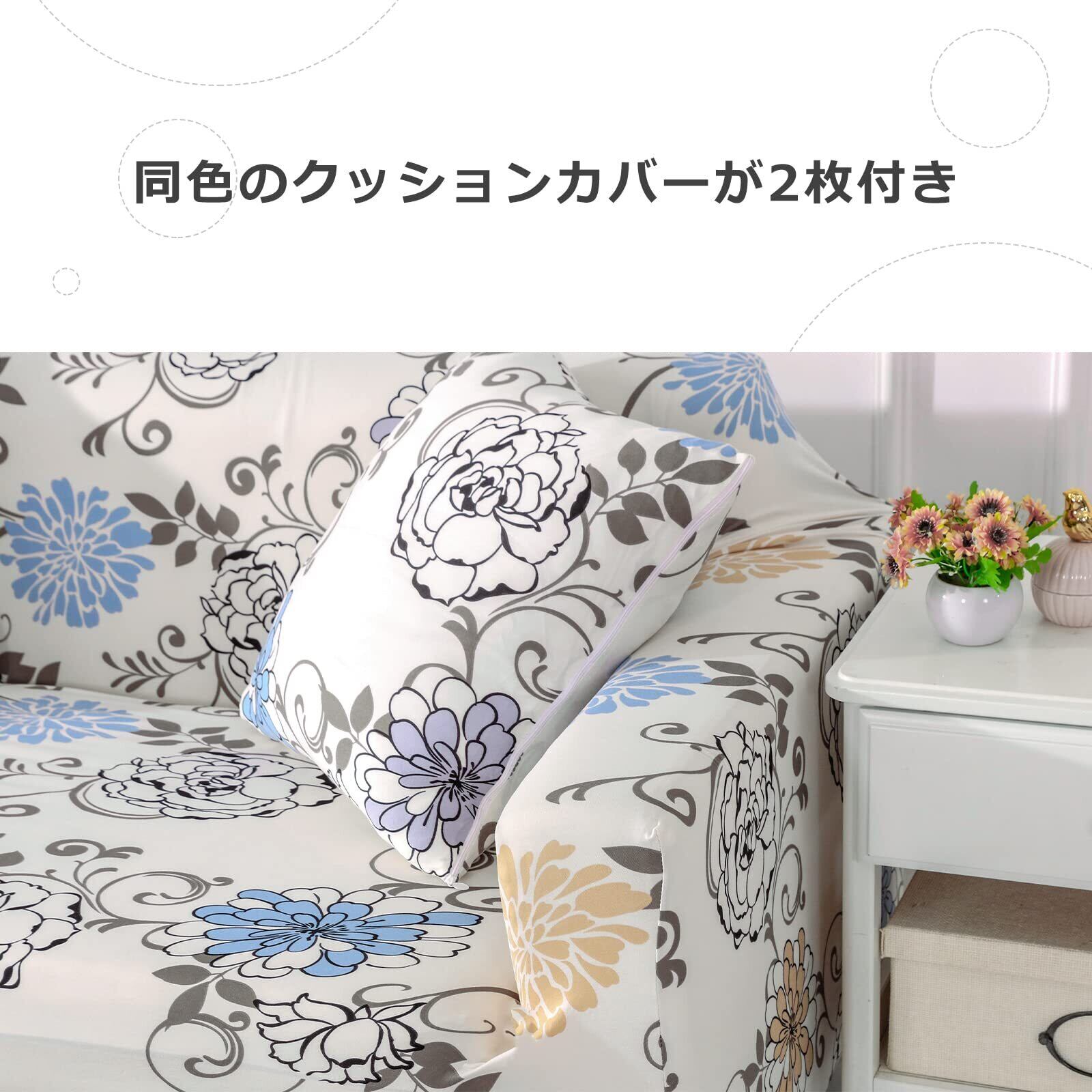 CHOZAN ソファーカバー 2人掛け 肘付き ストレッチ 北欧風 伸縮素材 滑り止め 防塵 ソファー保護 クッションカバー2枚付